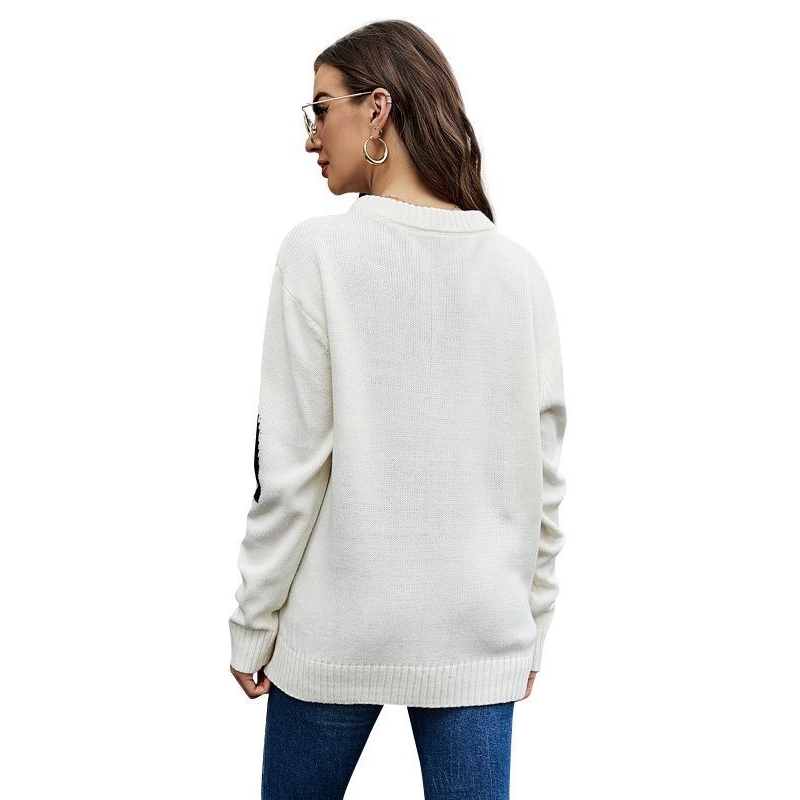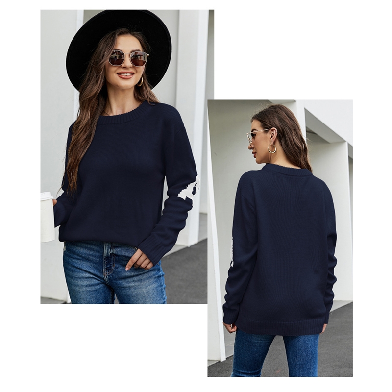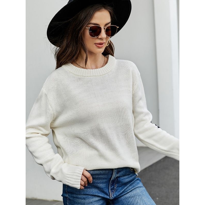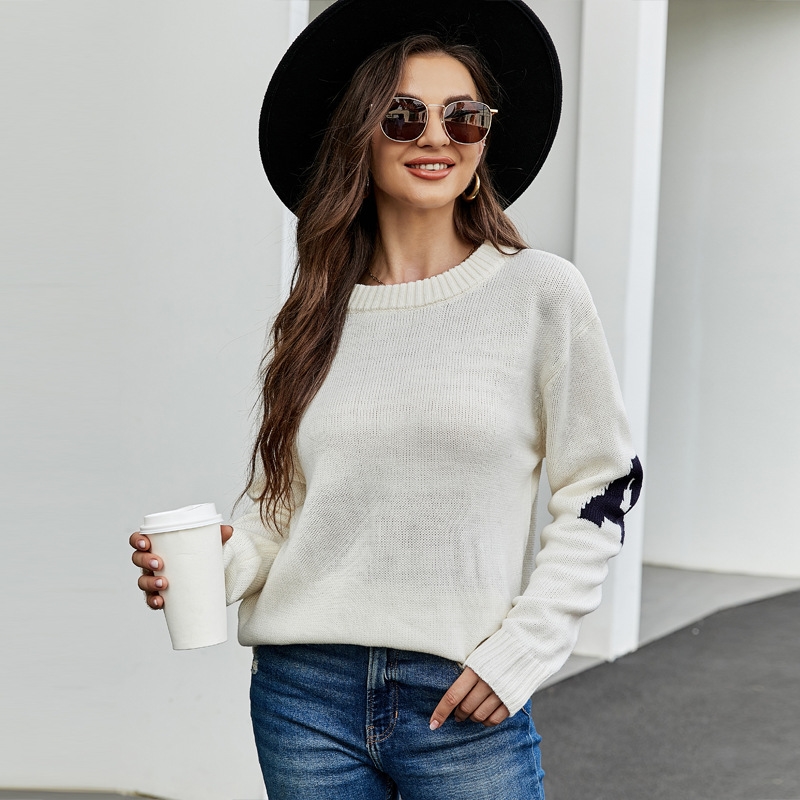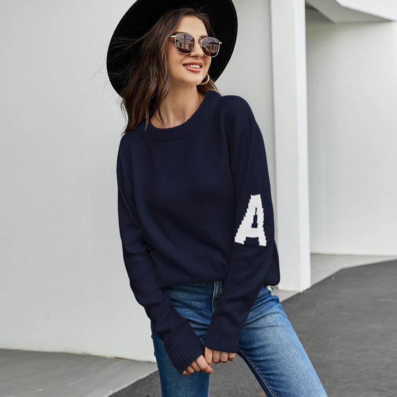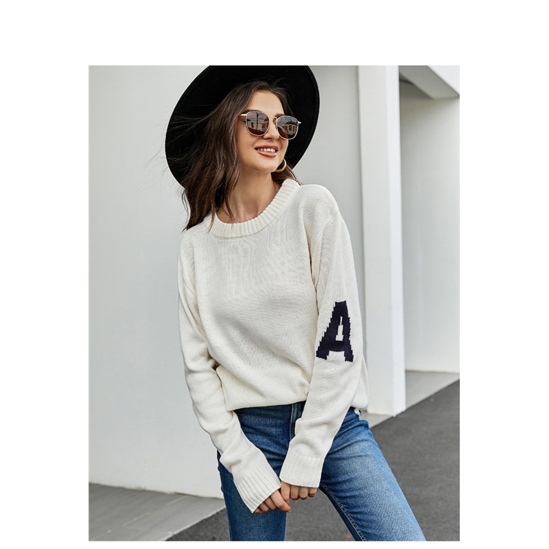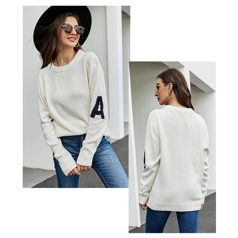 1. Fit: This letter jacquard casual loose crewneck sweater offers a relaxed fit, making it a comfortable and effortless choice for everyday wear.