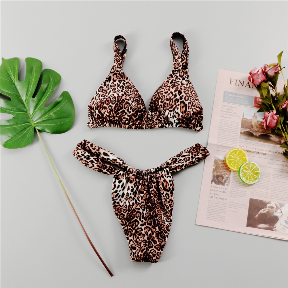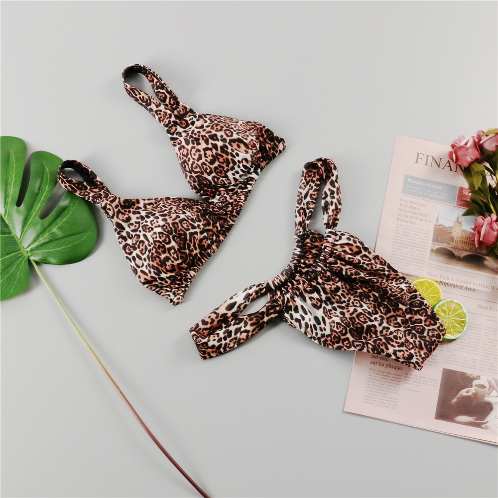 Leopard Printed Padded Bra And Thong Two Pieces Bikini