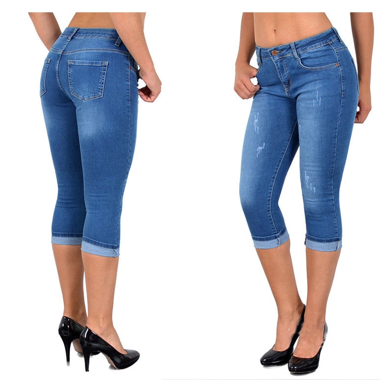 Solid Color Simple Seven-Point Jeans
