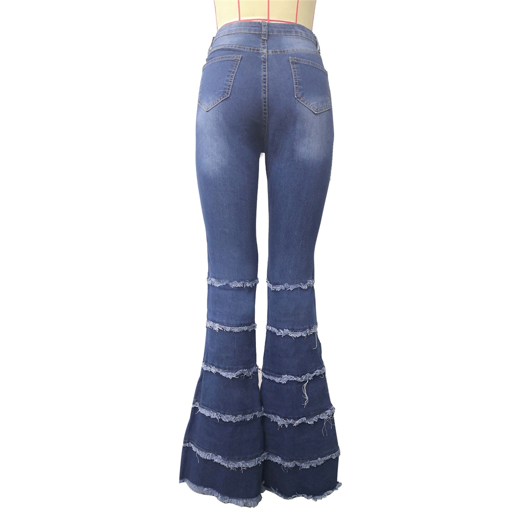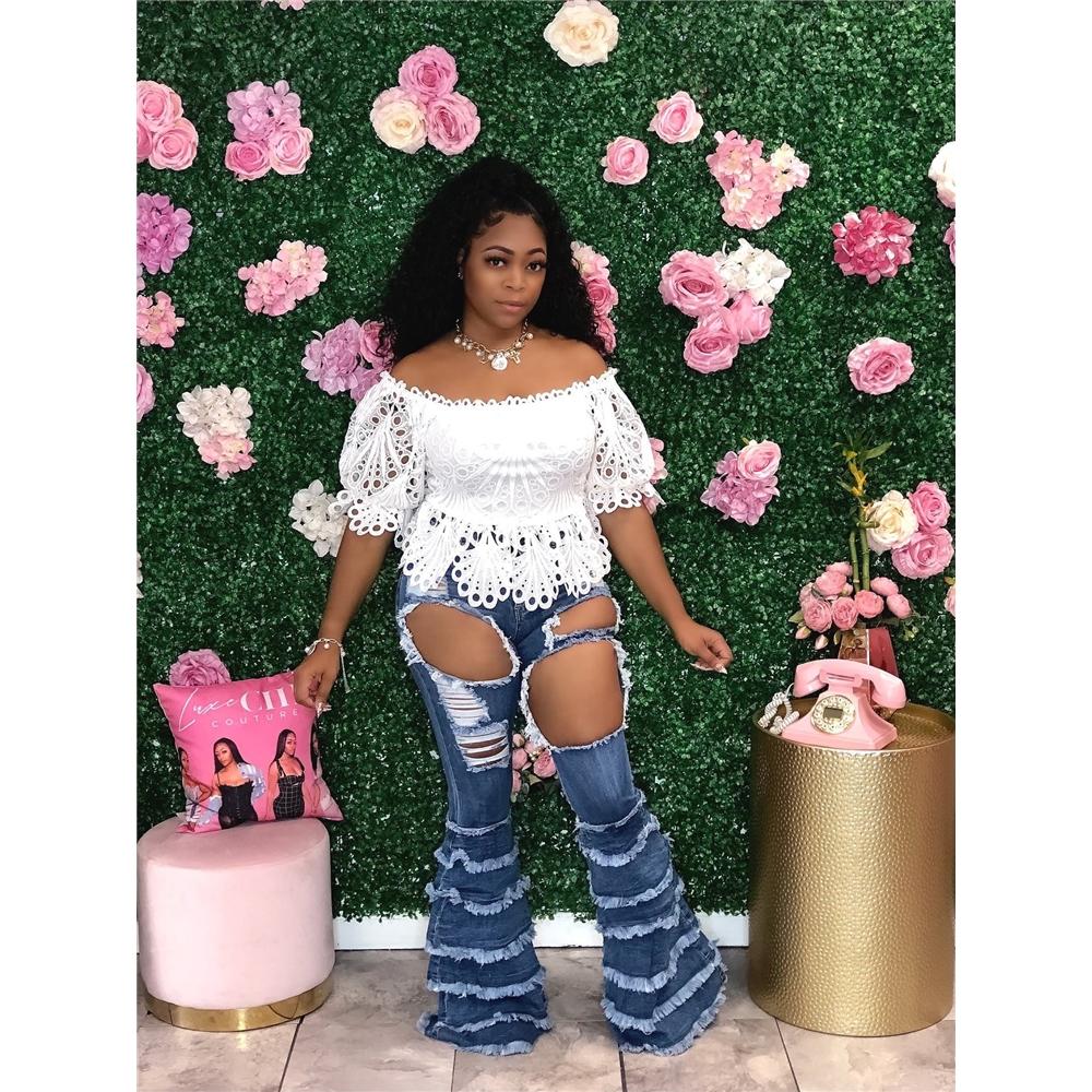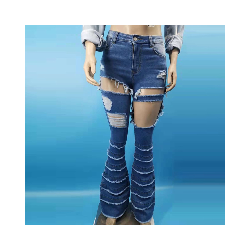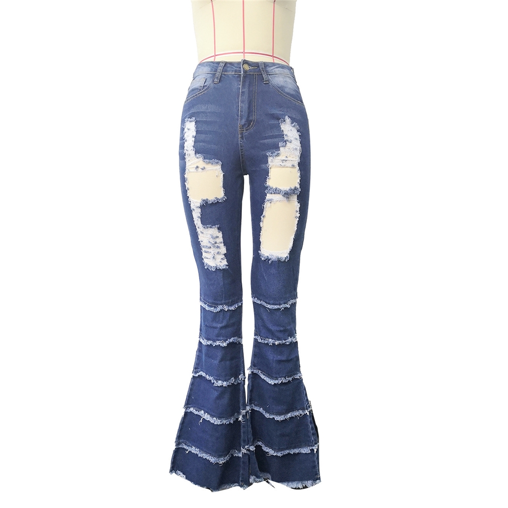 High Waisted Ripped Hole Flared Denim Pants Jeans