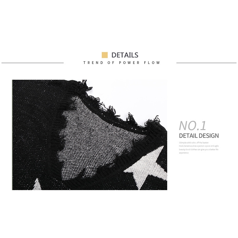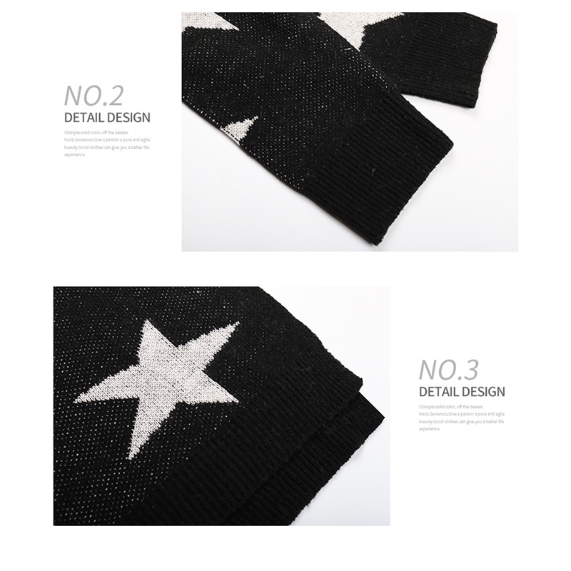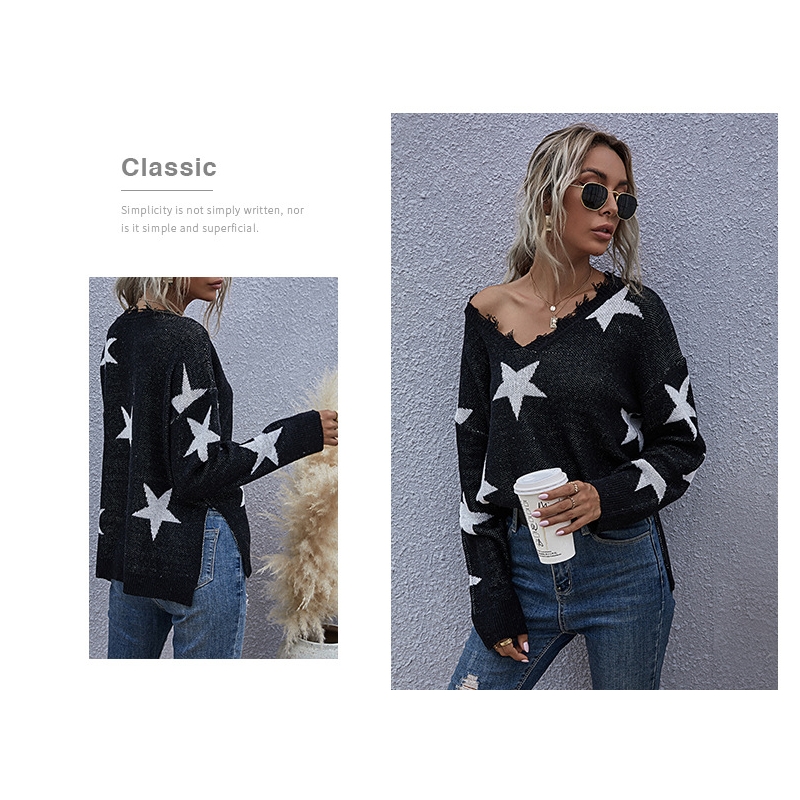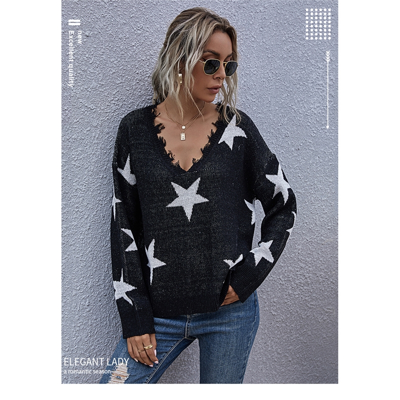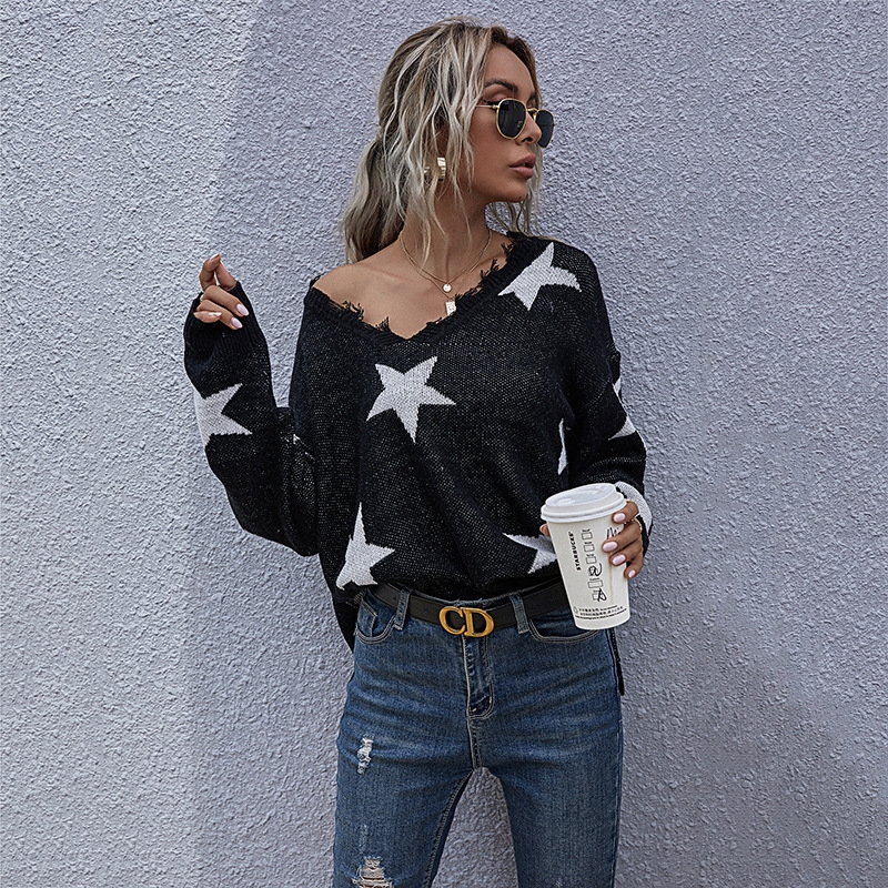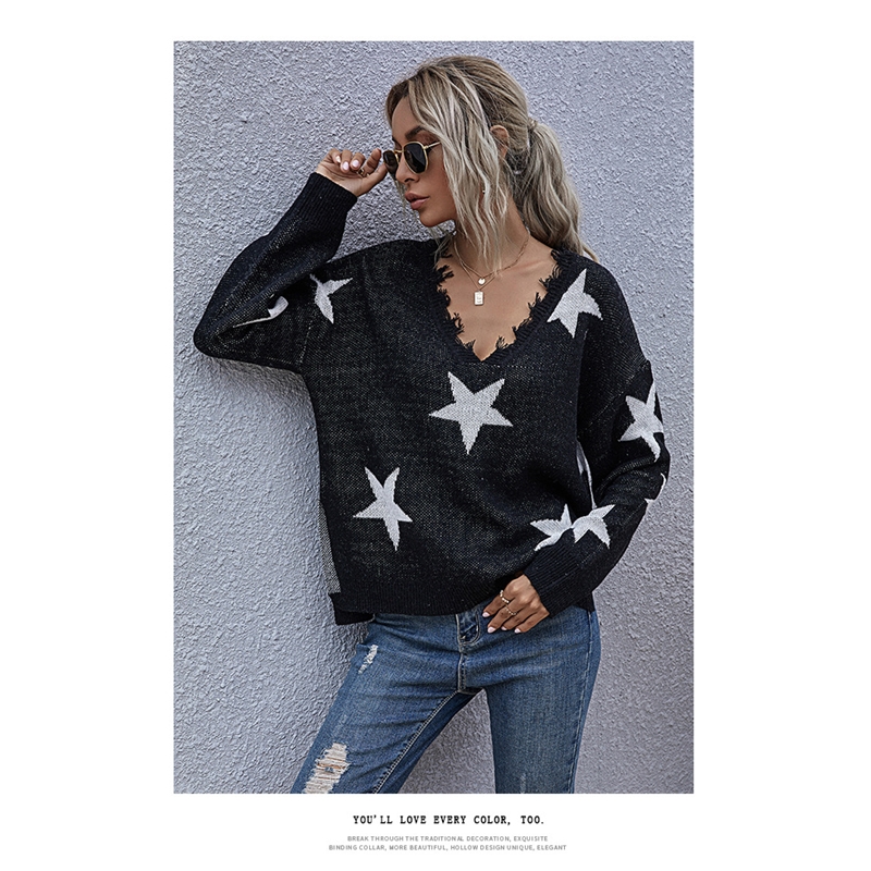 Long Sleeves V-Neck Printed Casual Loose Pullover Knitted Sweater