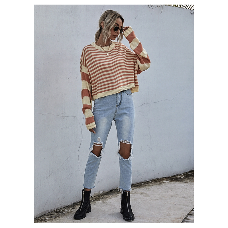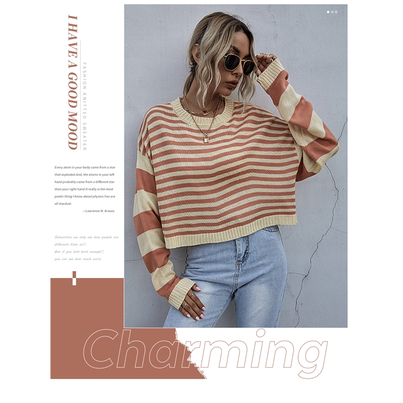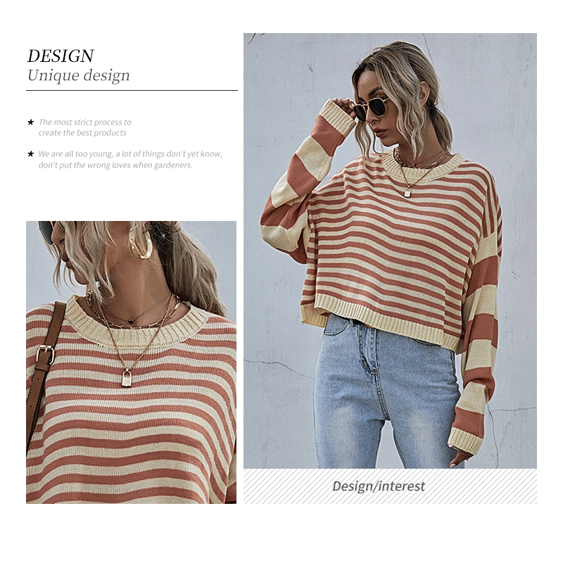 Contrast Color Crewneck Striped Short Knitted Sweater