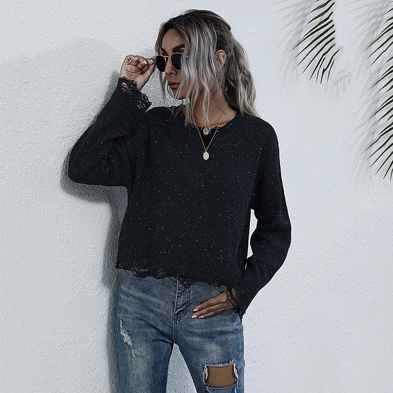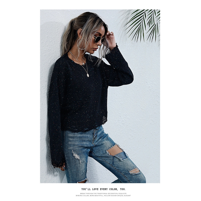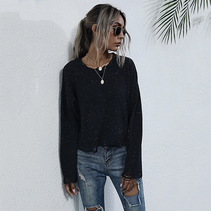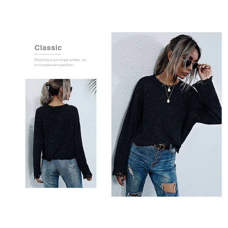 Casual Loose Crewneck Long Sleeves Short Knitted Sweater