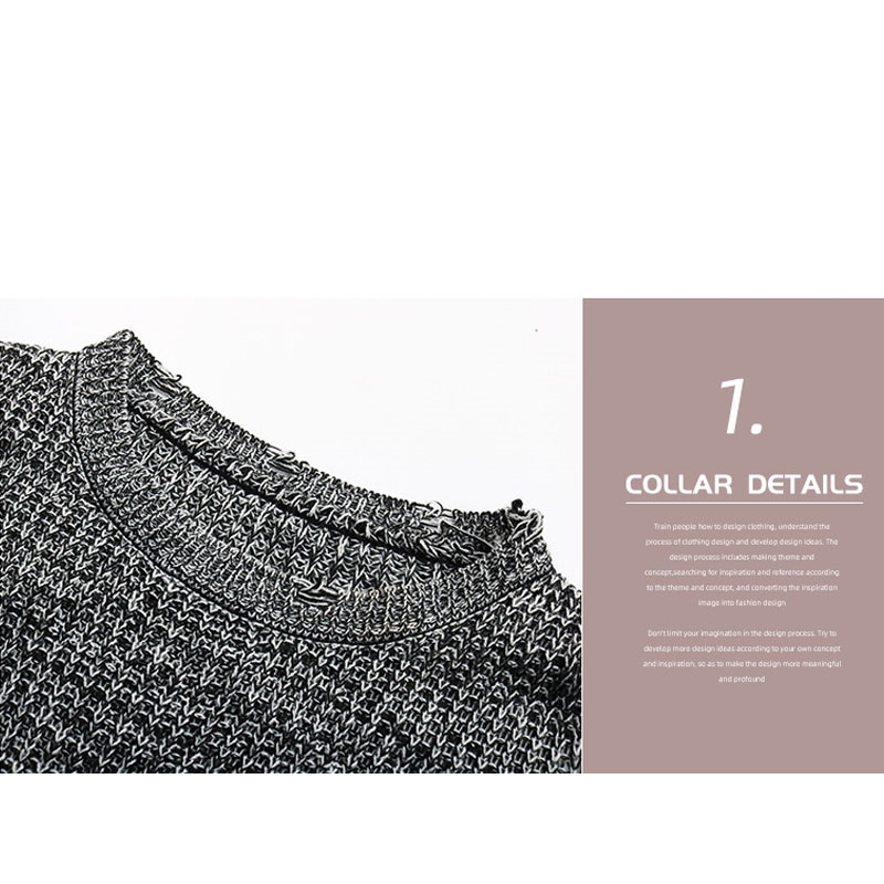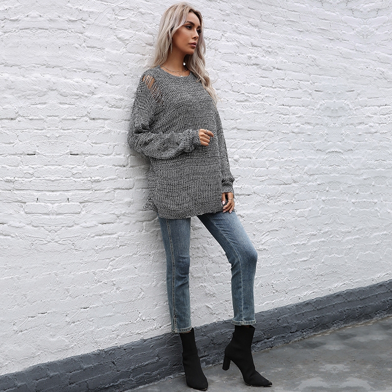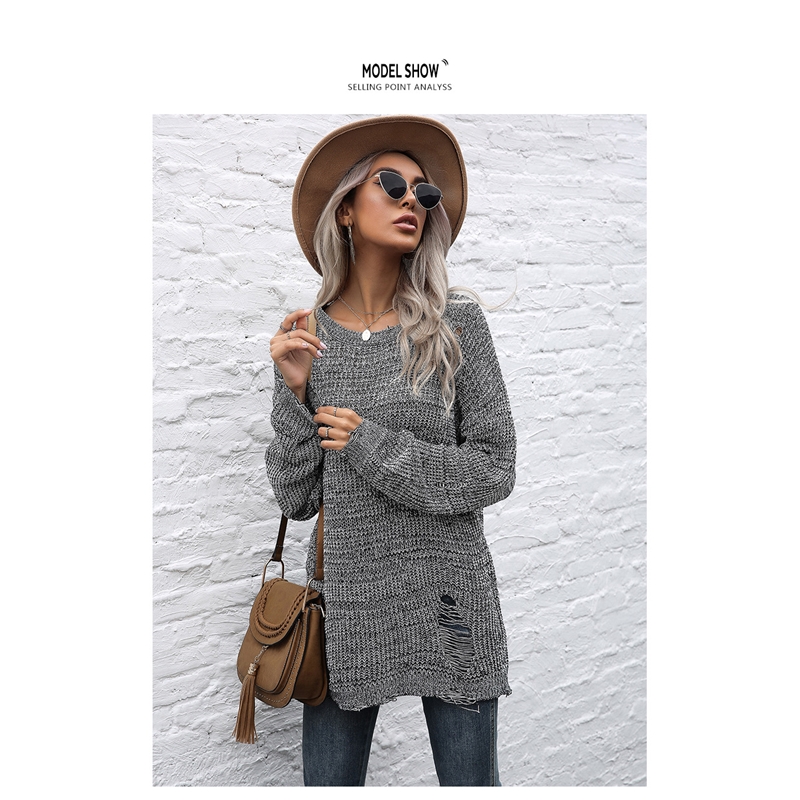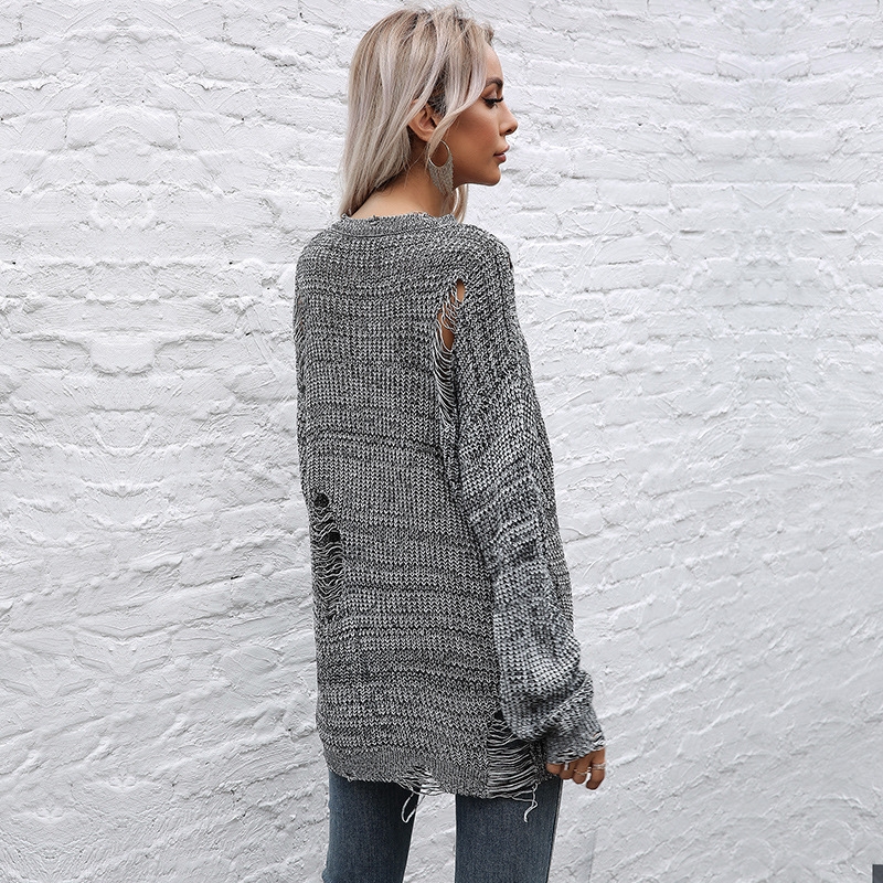 Contrast Color Hole Round Neck Casual Knitted Sweater
