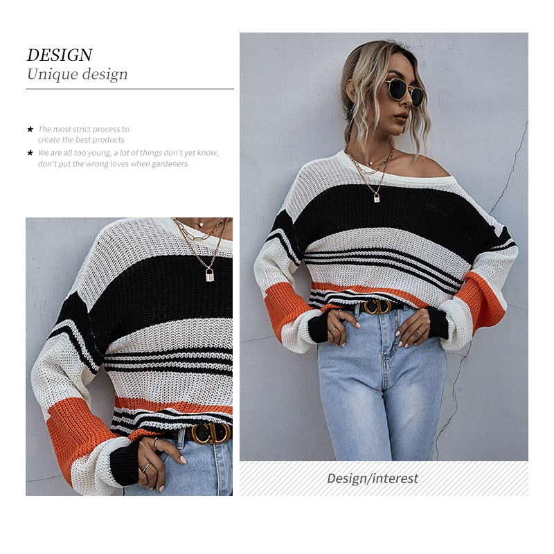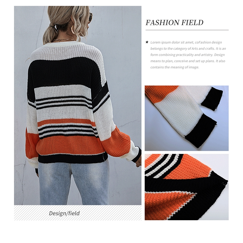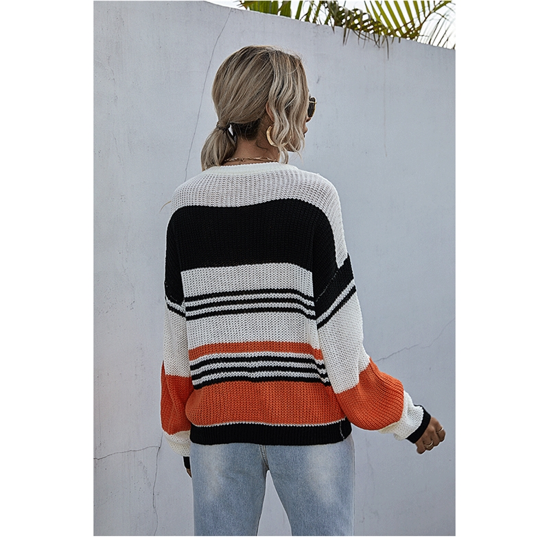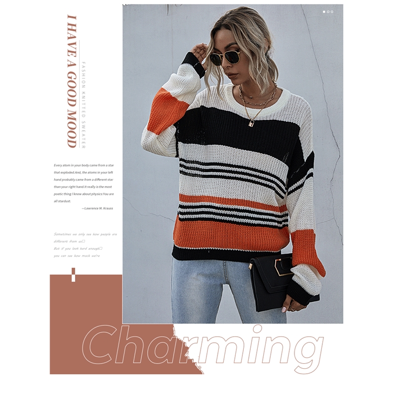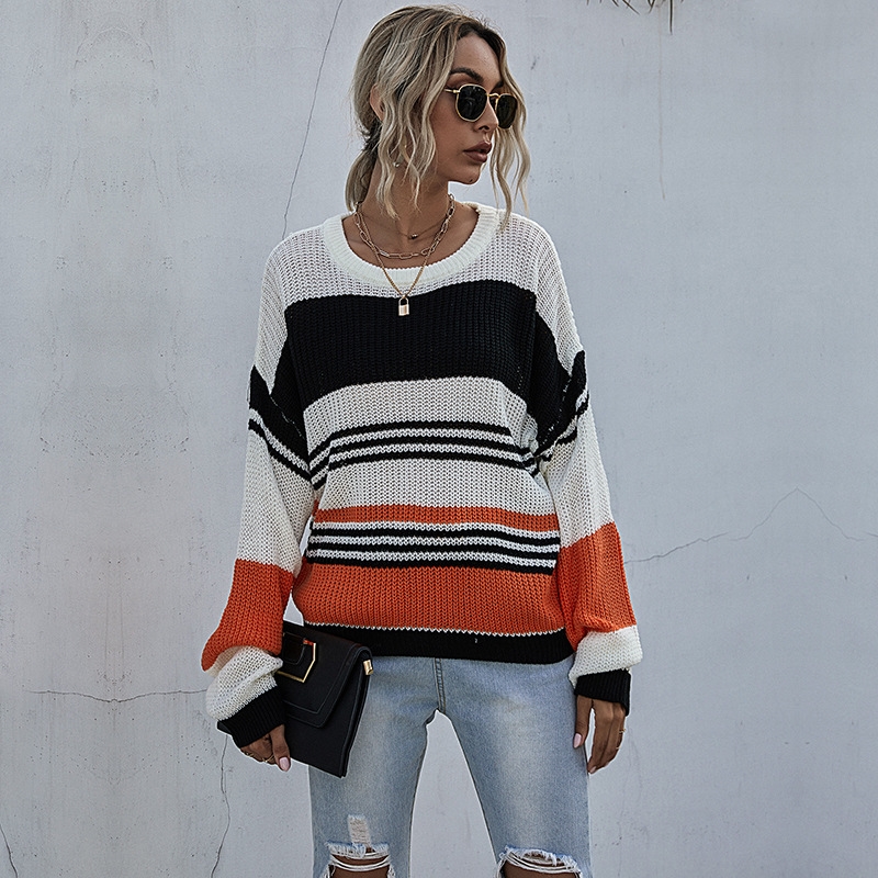 Casual Loose Contrast Color Striped Thin Sweater