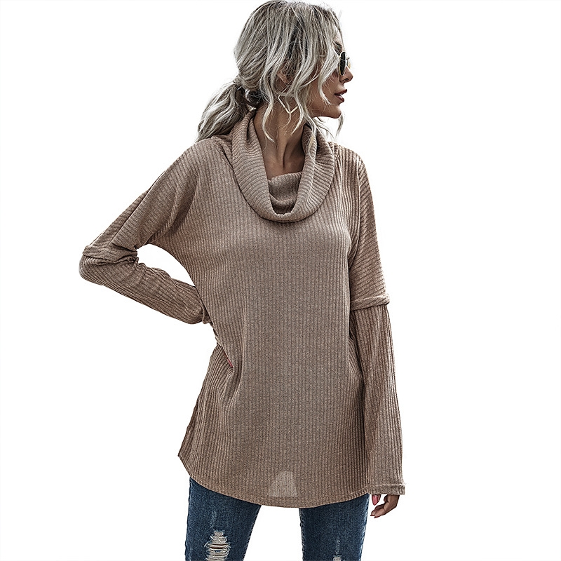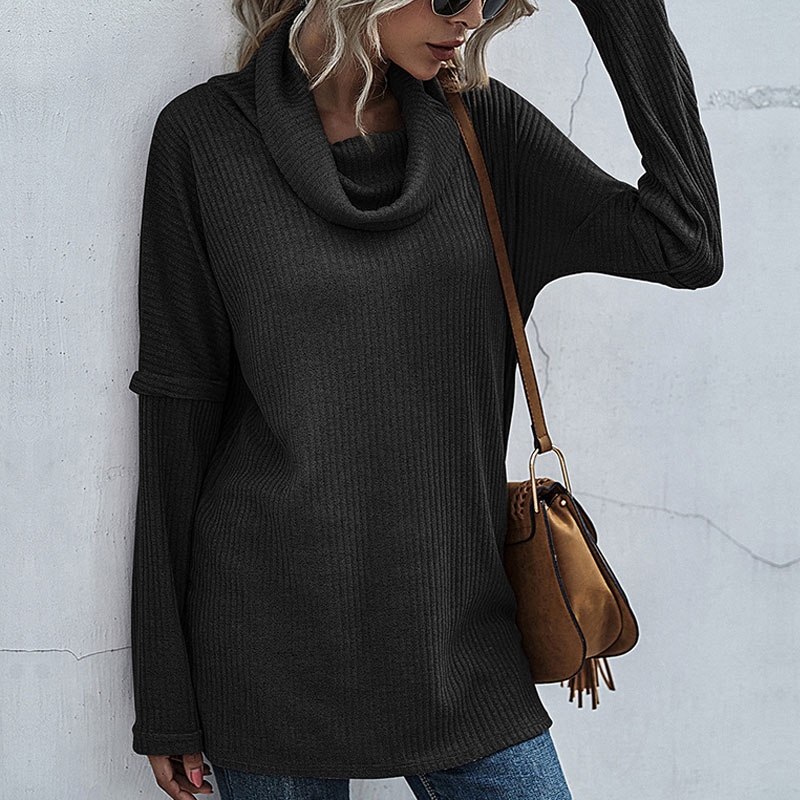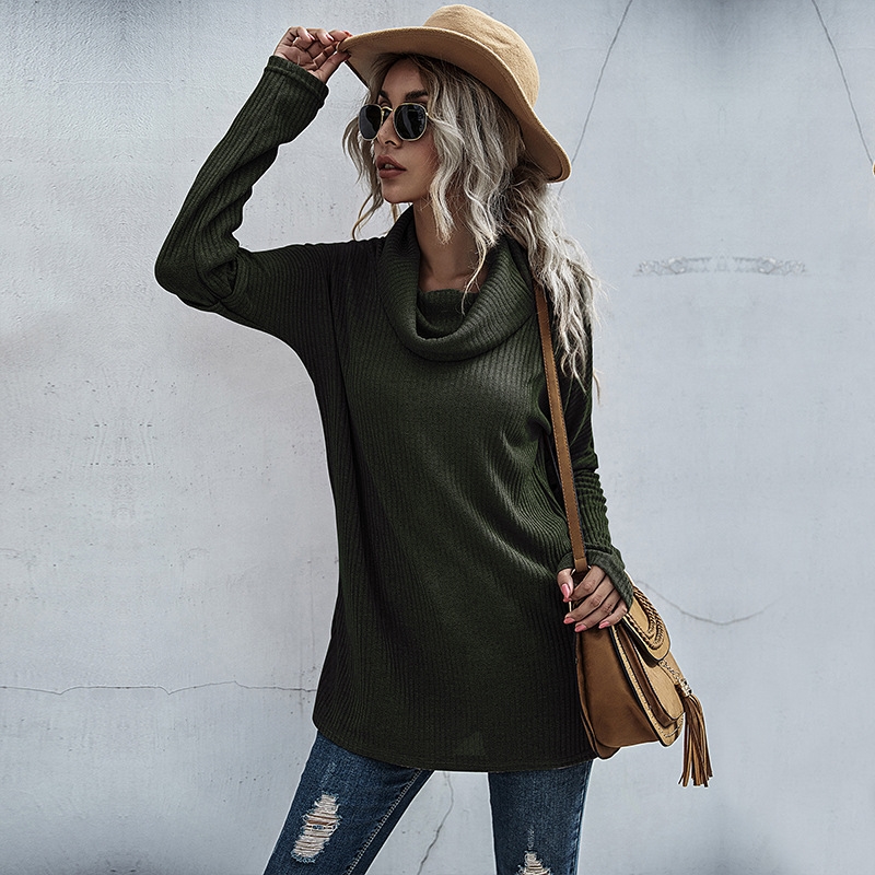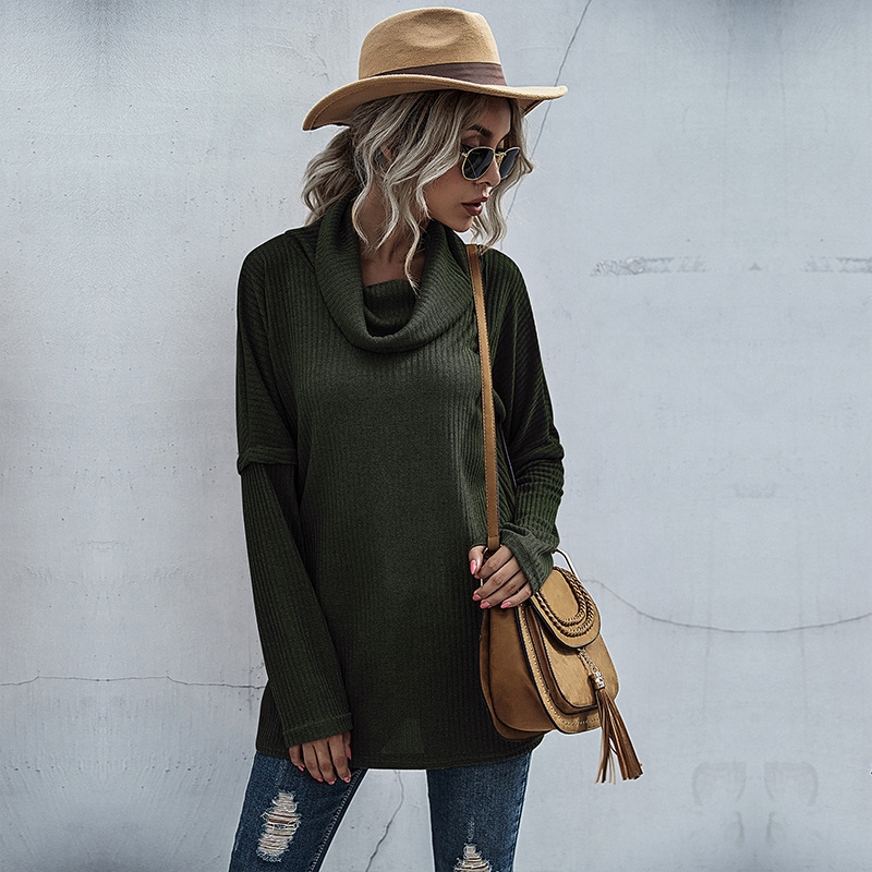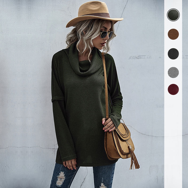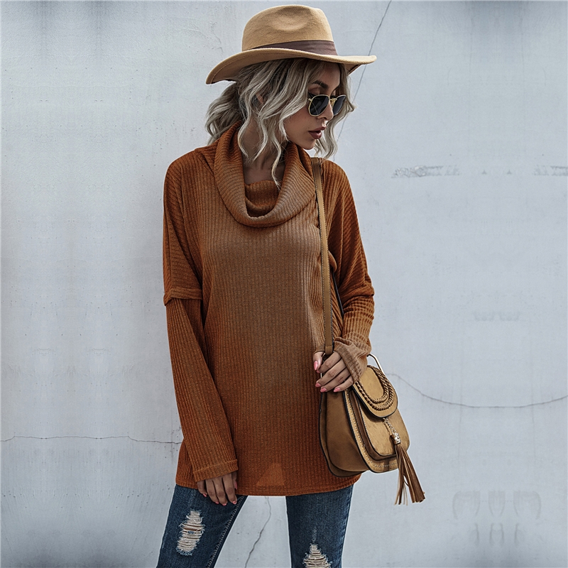 Solid Color Pile Collar Casual Loose Knitted Sweater