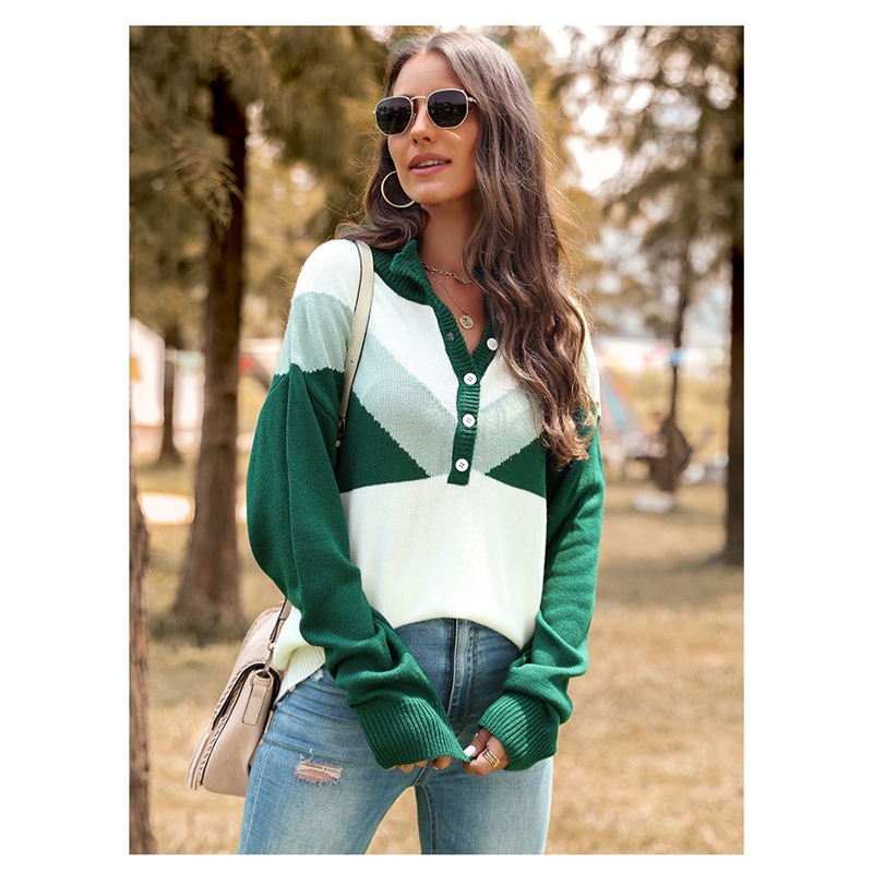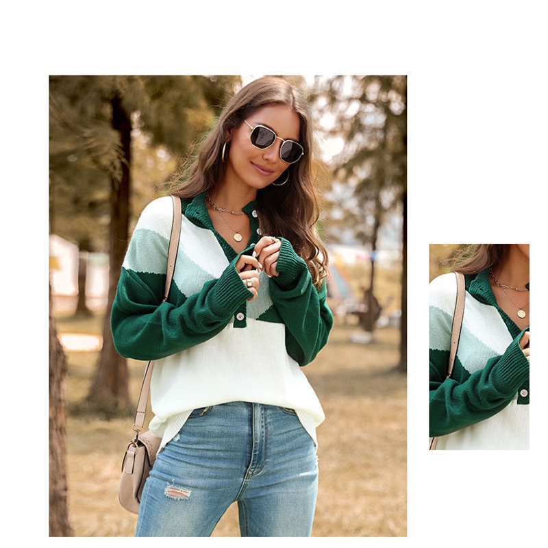 Contrast Color Long Sleeves Casual Loose Sweater