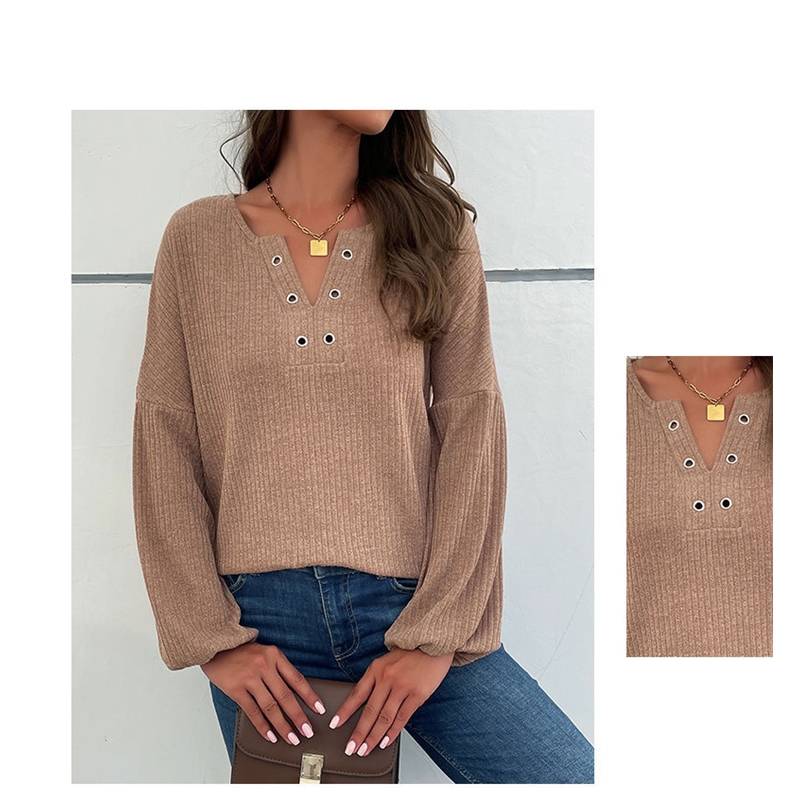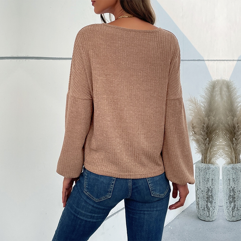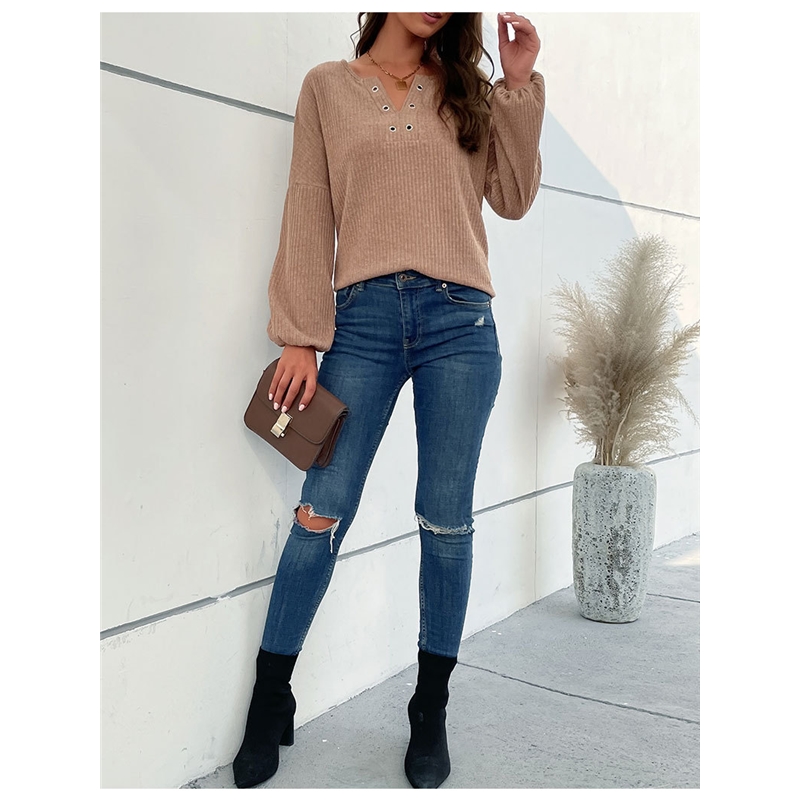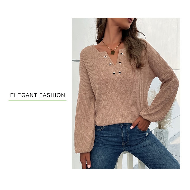 Solid Color Long Sleeved V-Neck Casual Sweater