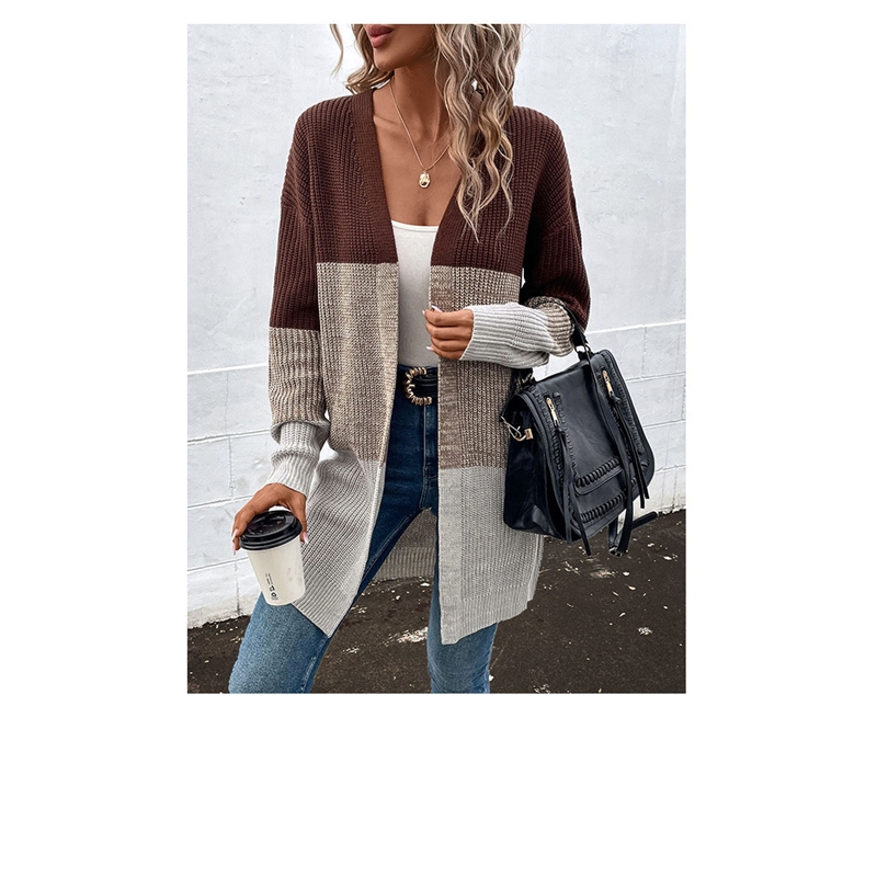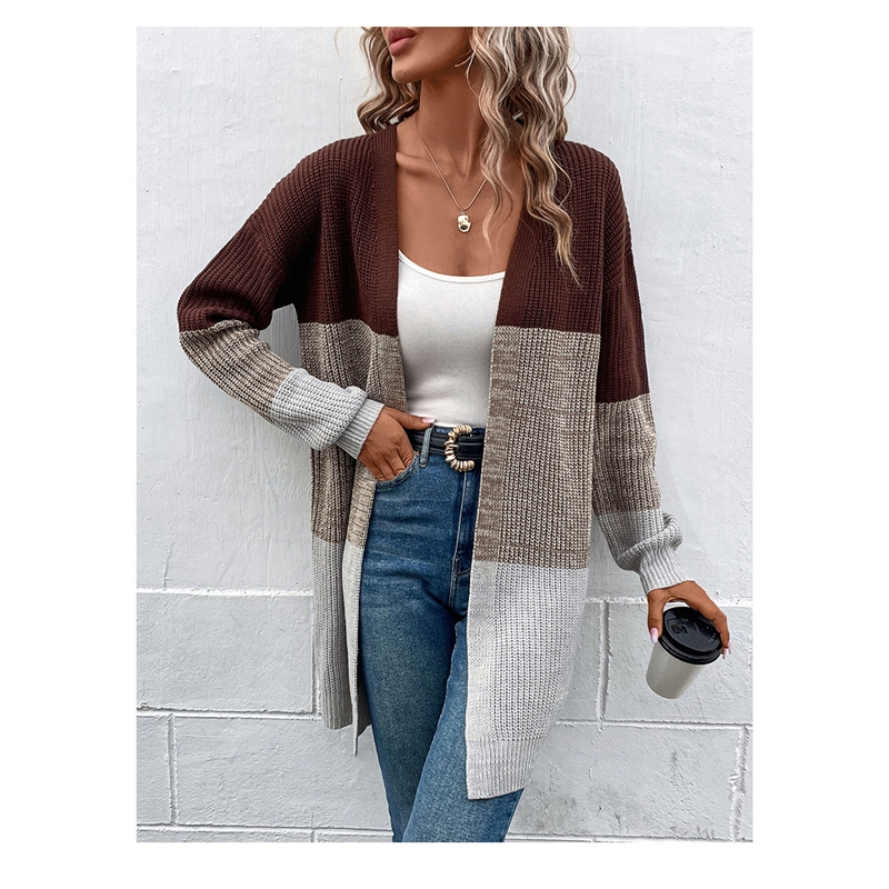 Long Sleeves Contrast Color Long Sweater Cardigan