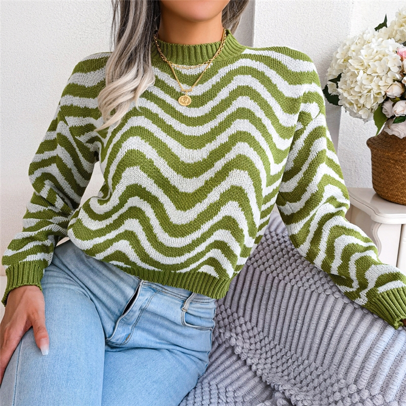 Long Sleeve Round Neck Contrast Striped Sweater