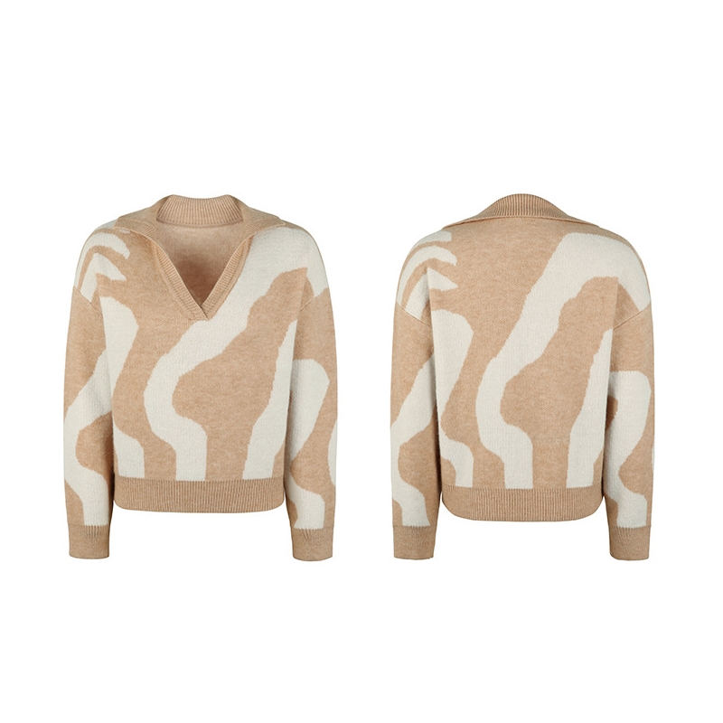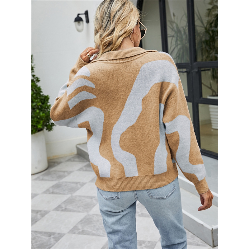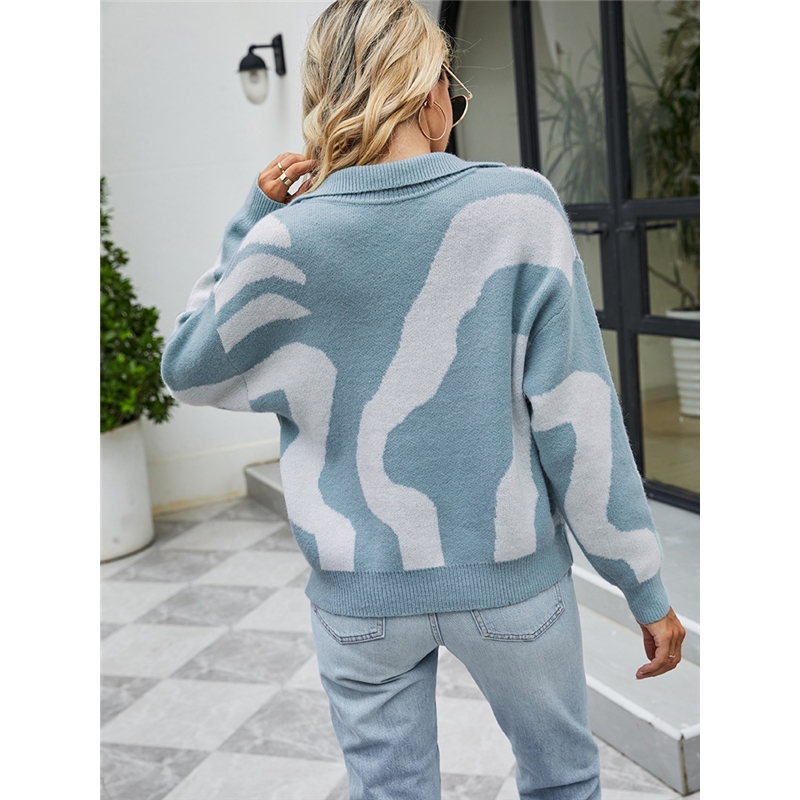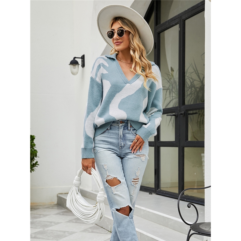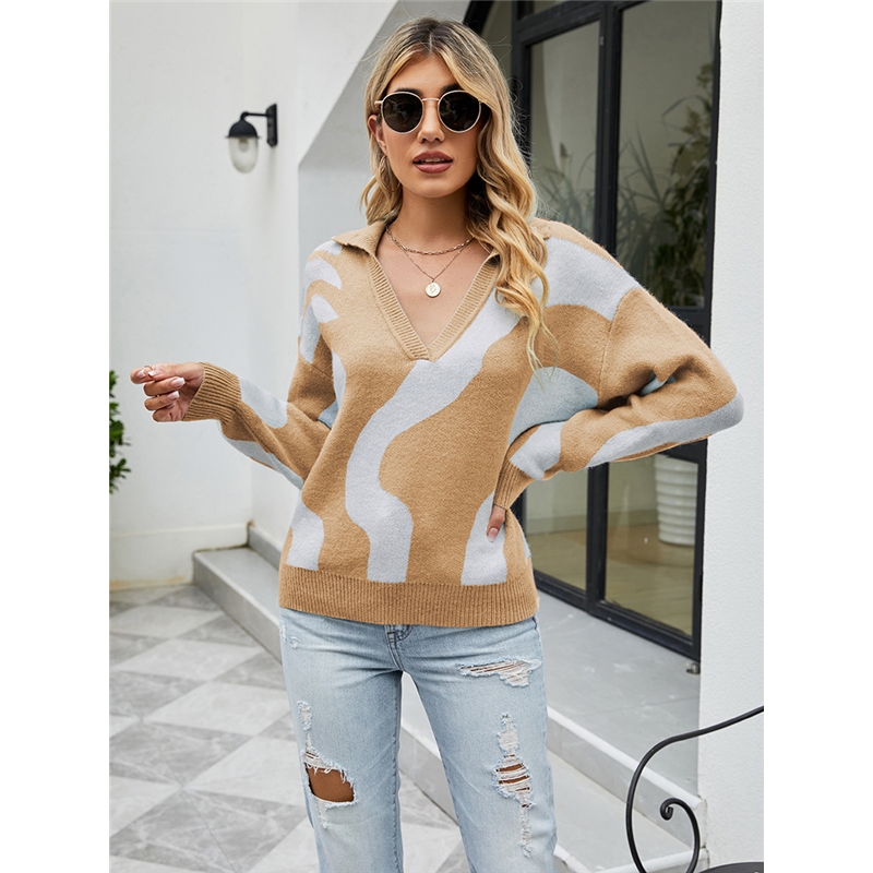 Casual Loose Contrast Color V-Neck Pullover Sweater