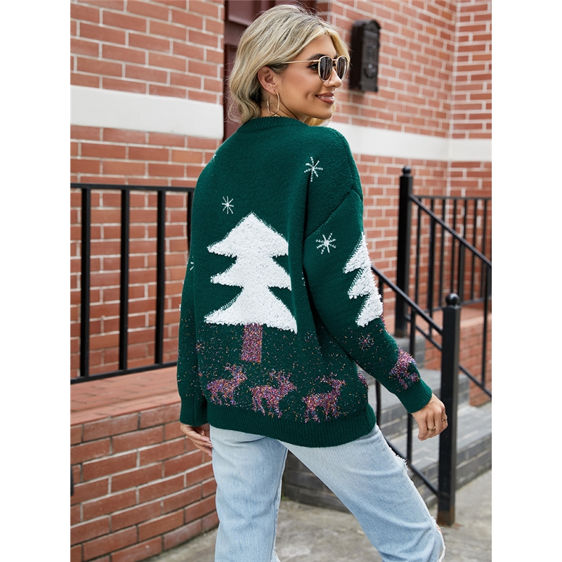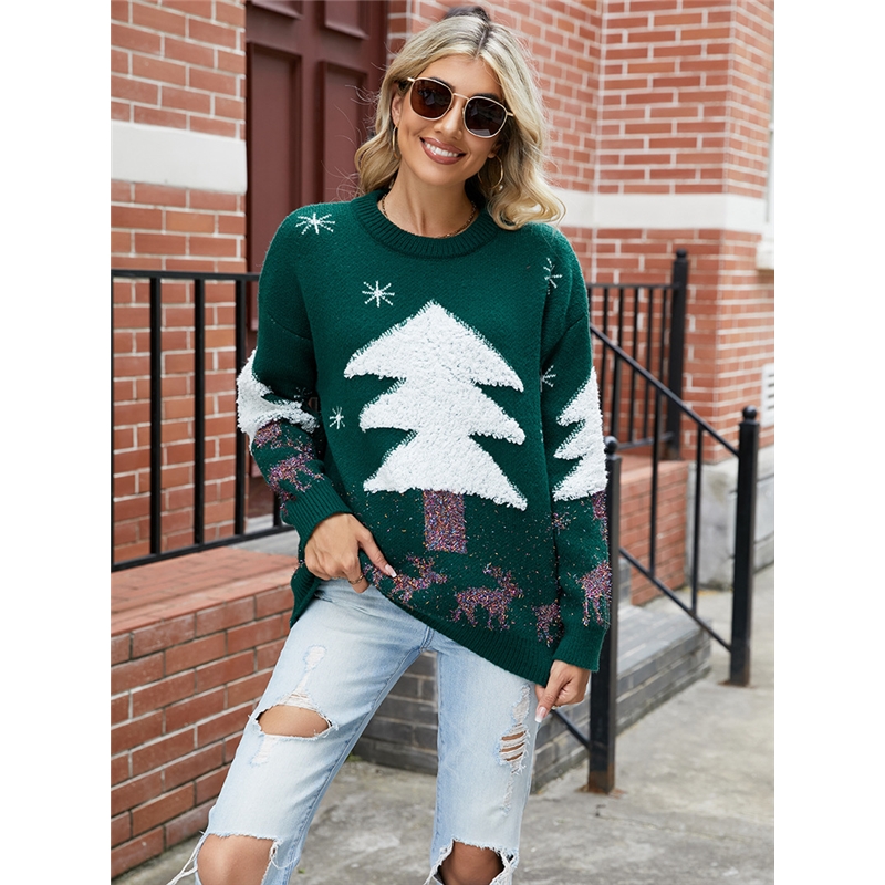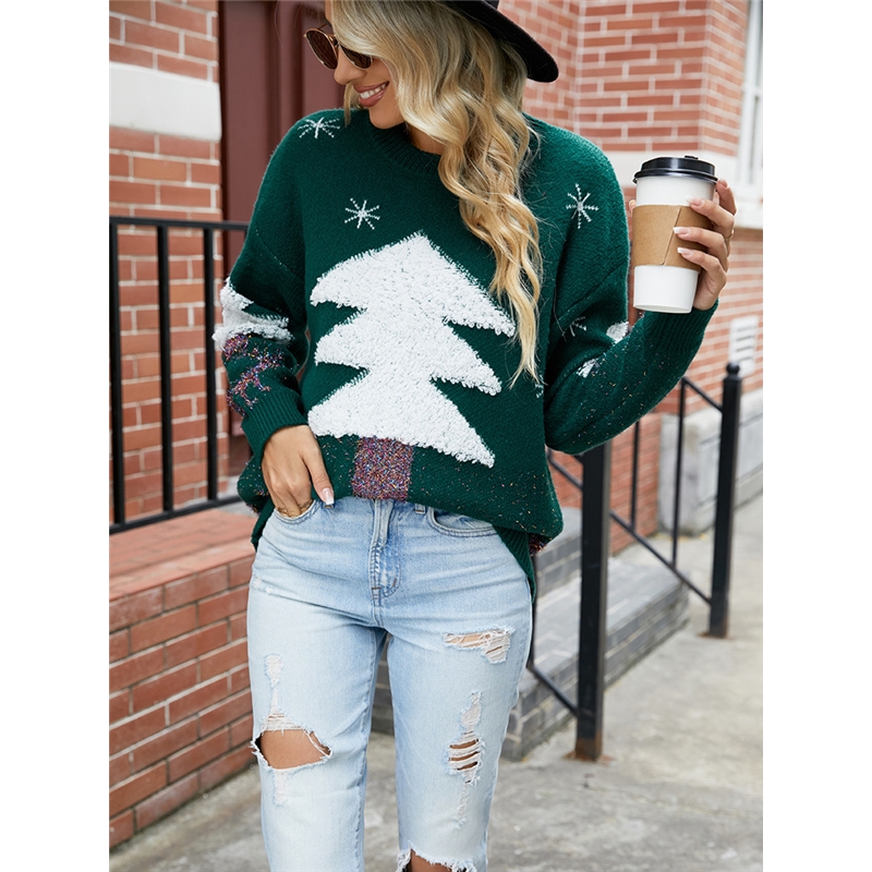 Casual Loose Crewneck Christmas Tree Pullover Sweater