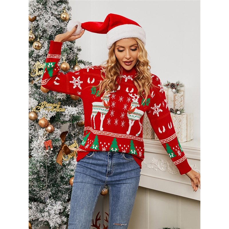 Crewneck Reindeer Snowflake Christmas Festival Sweater