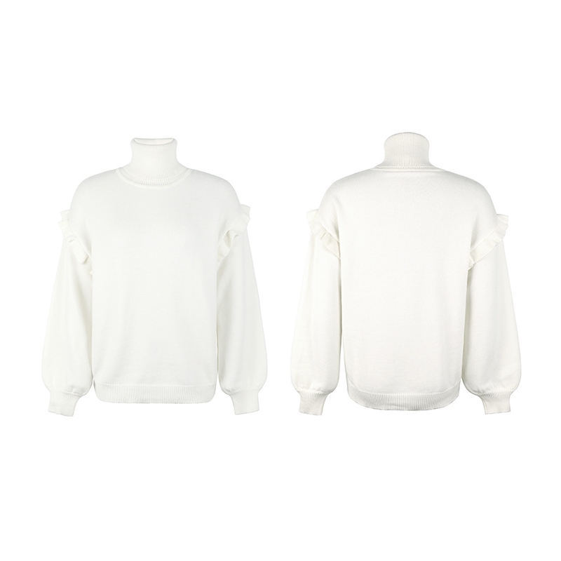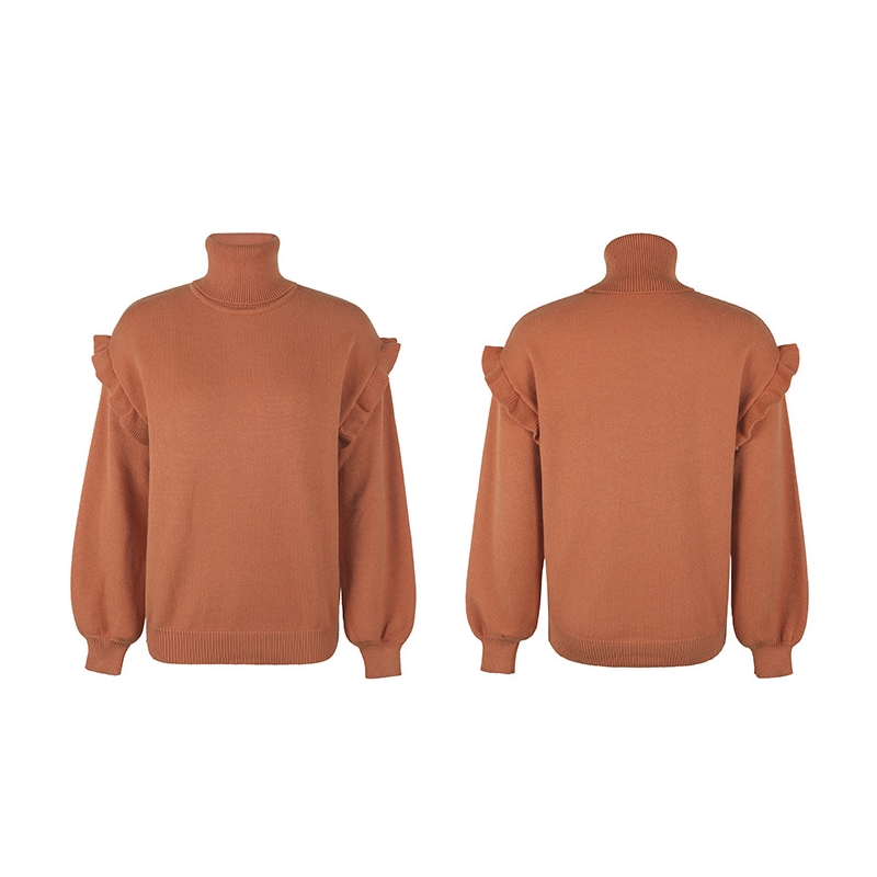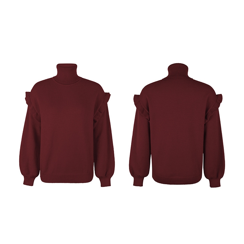 Solid Color High Neck Lotus Leaf Sleeves Sweater