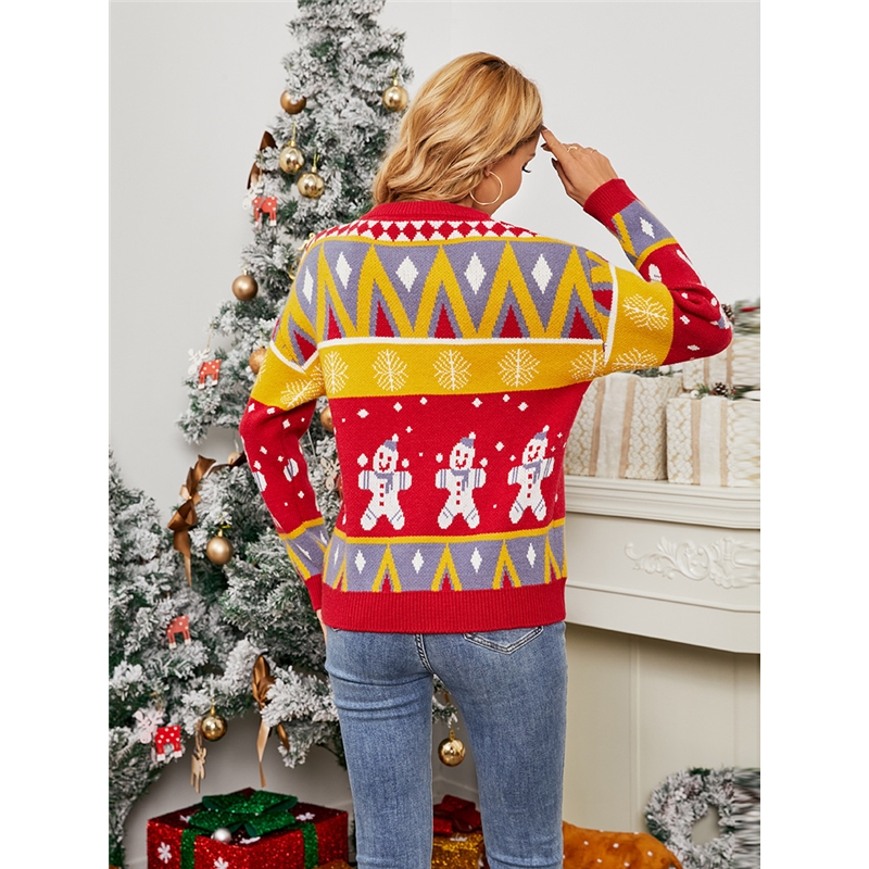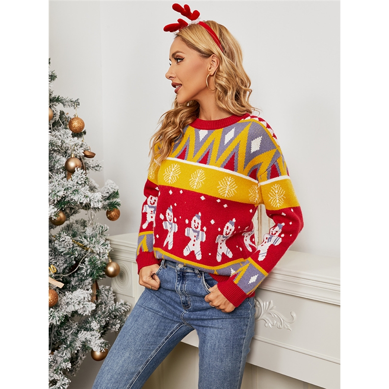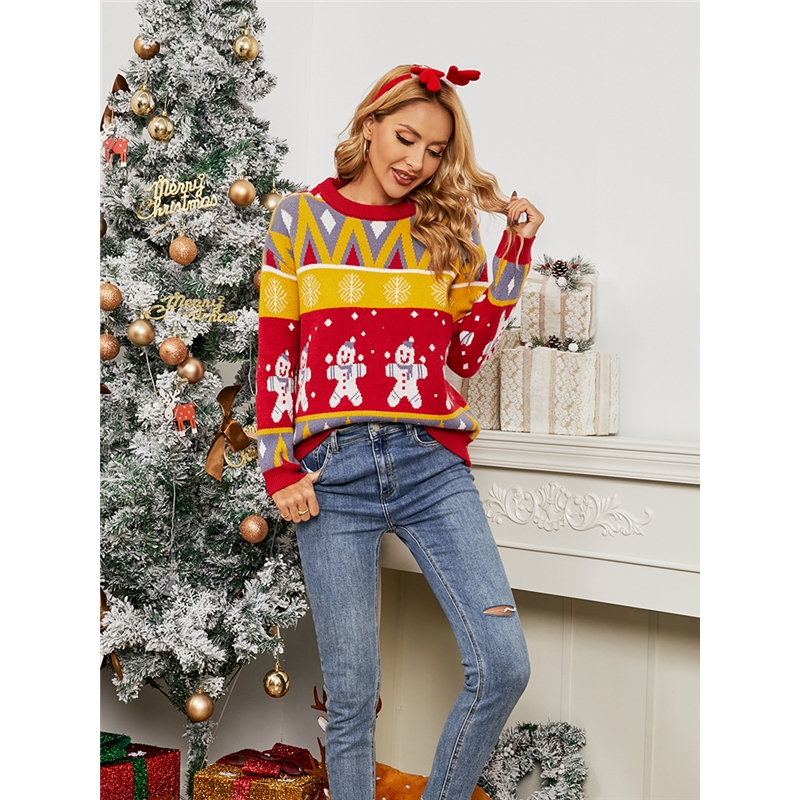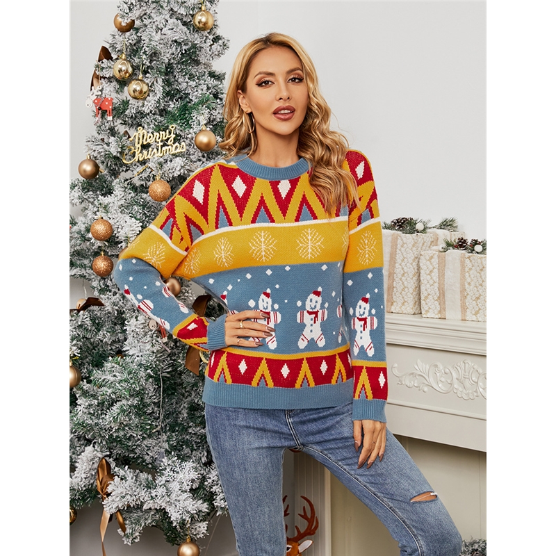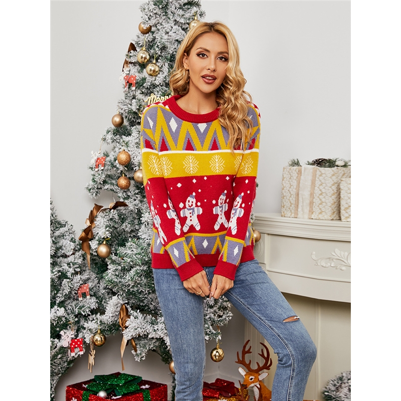 Long Sleeves Round Neck Printed Christmas Pullover Sweater