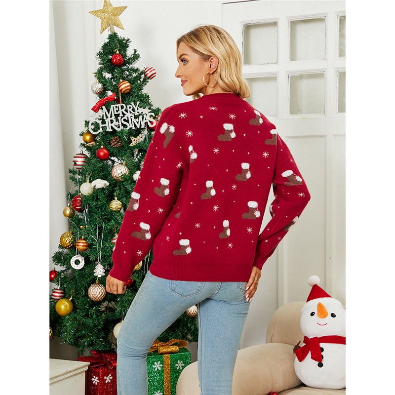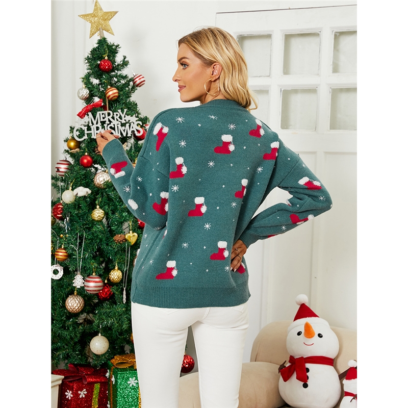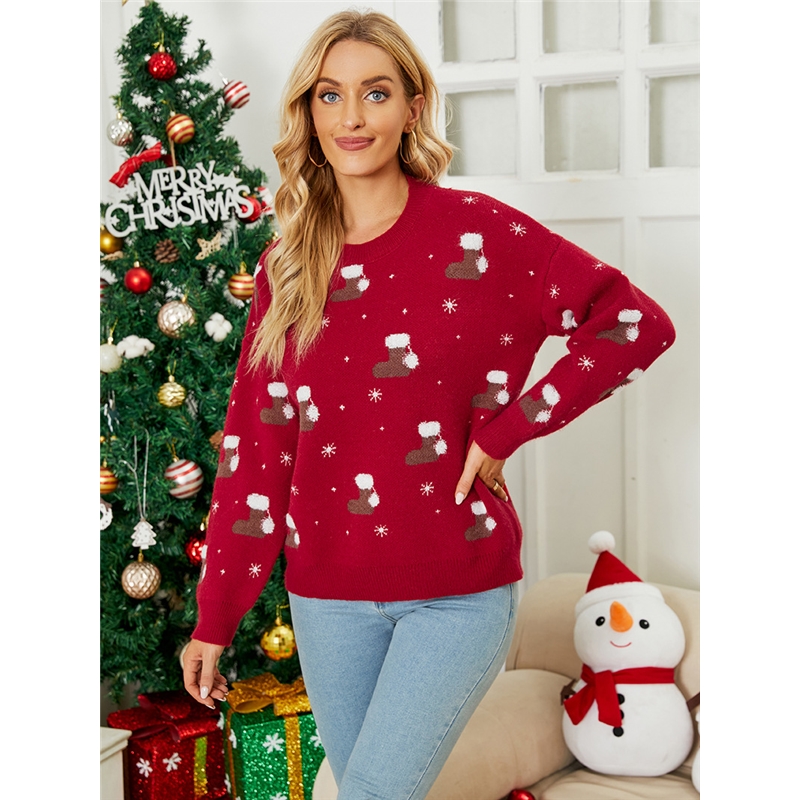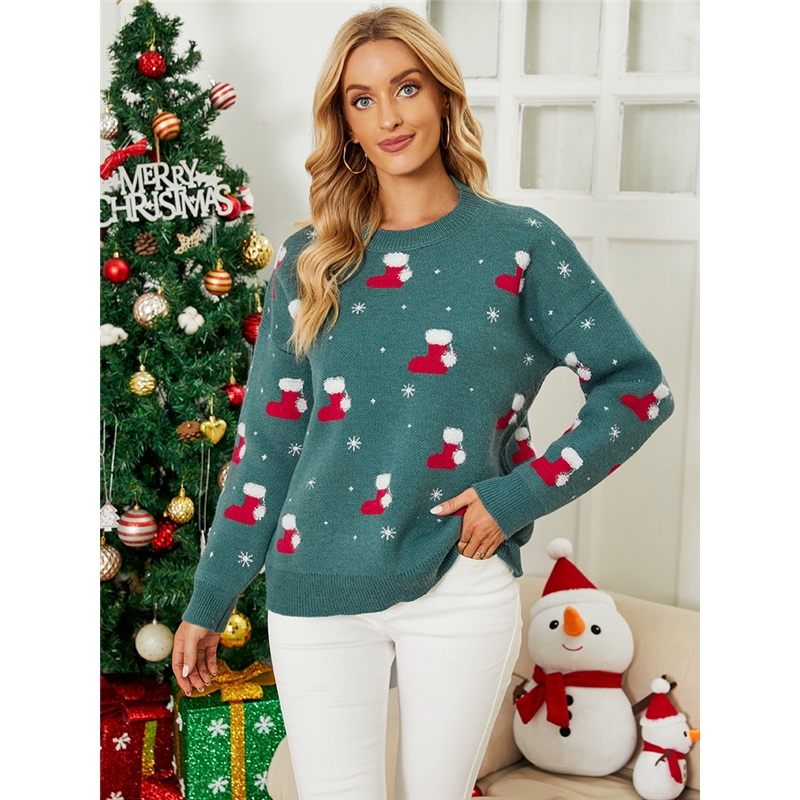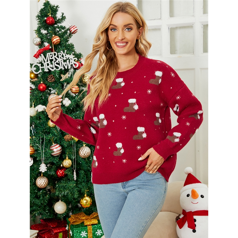 Casual Loose Round Neck Printed Christmas Pullover Sweater