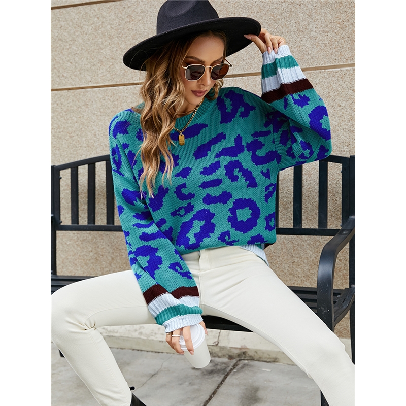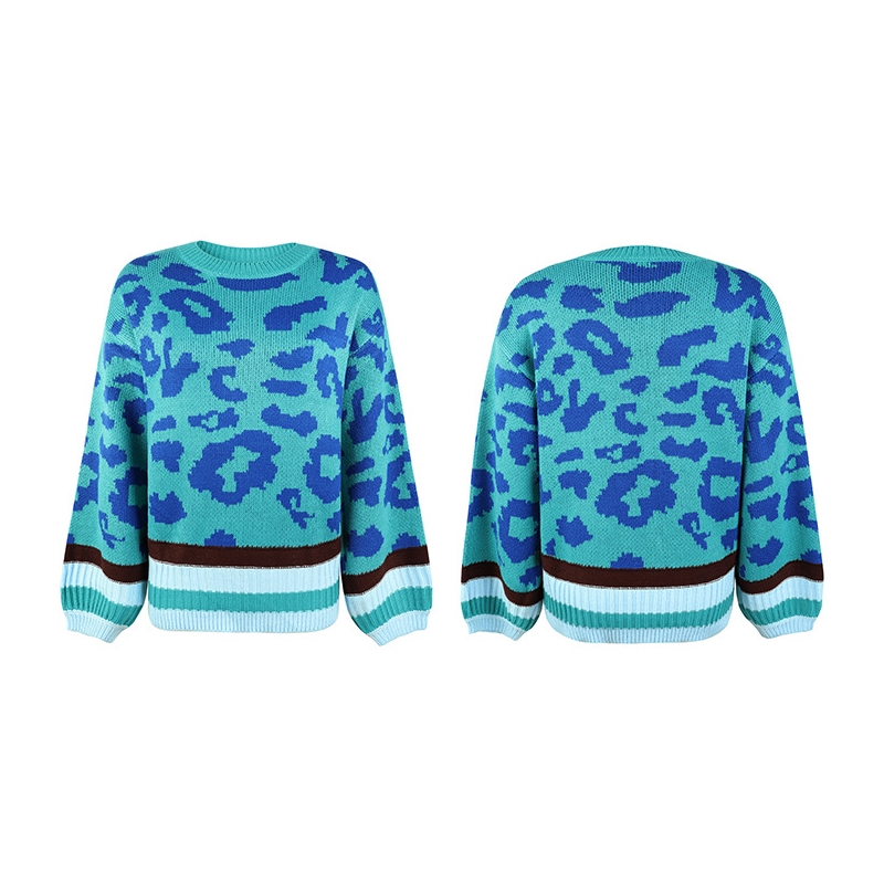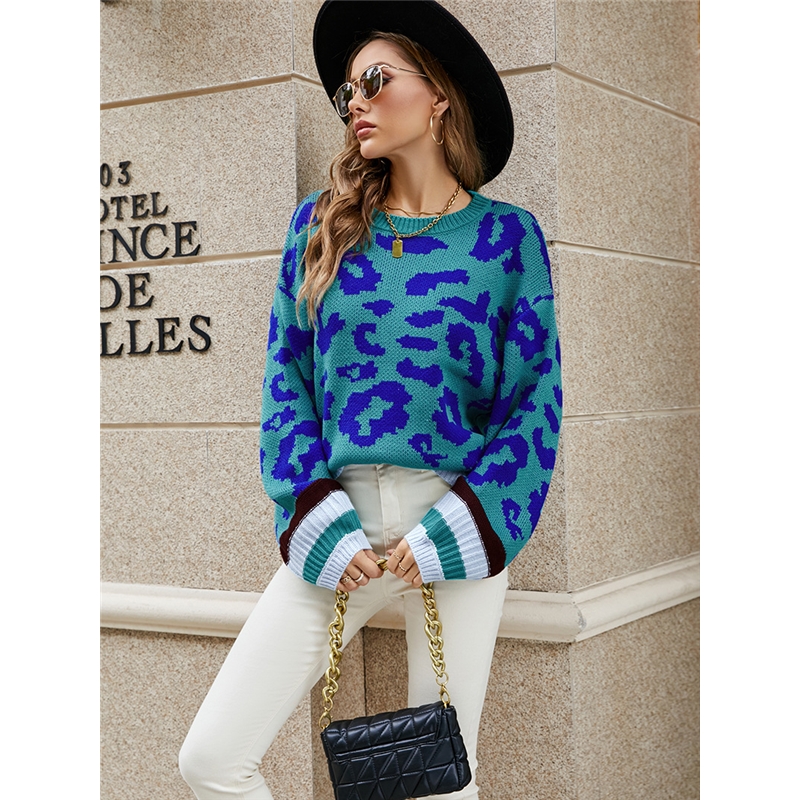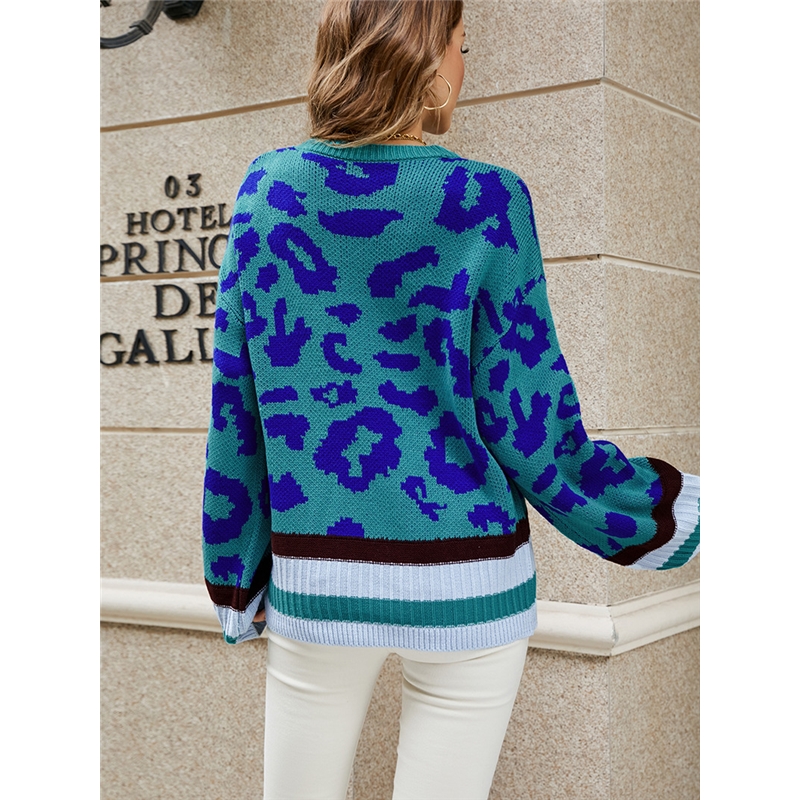Casual Loose Contrast Color Printed Lantern Sleeves Sweater