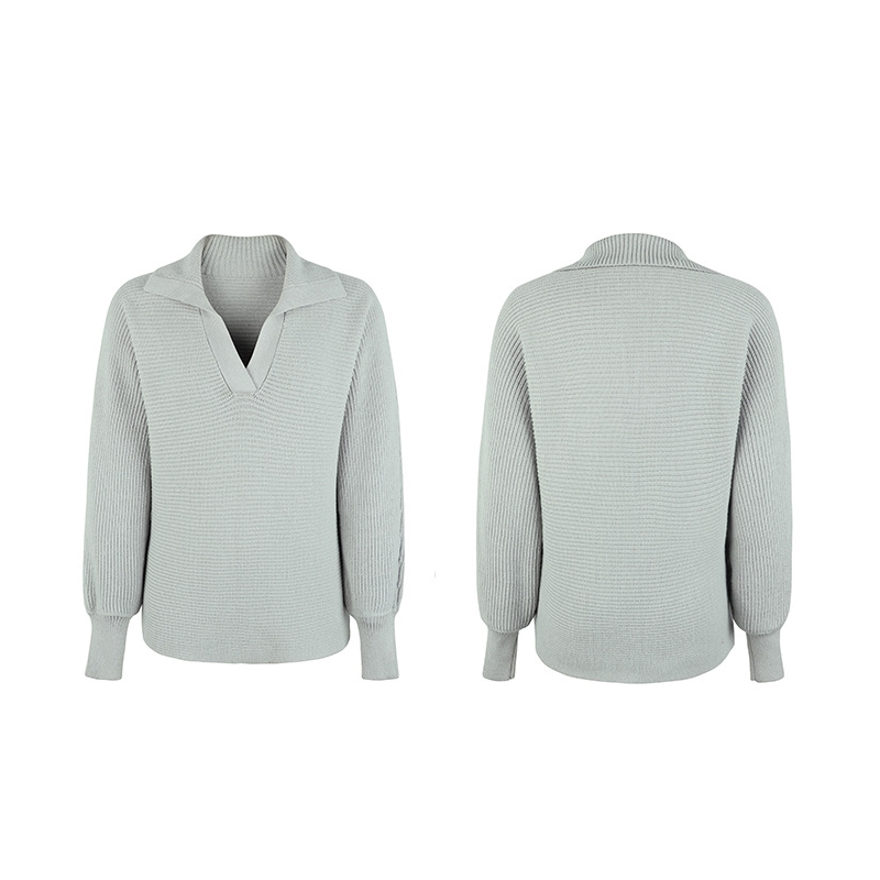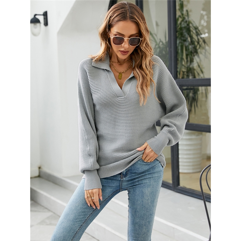 Casual Loose Solid Color Lapel Pullover Sweater
