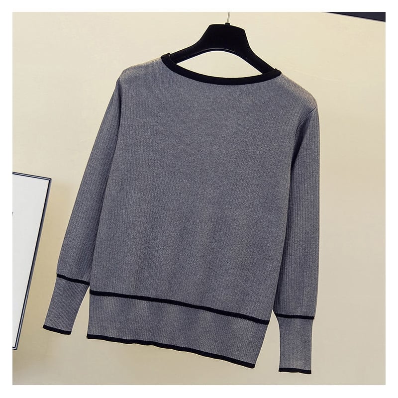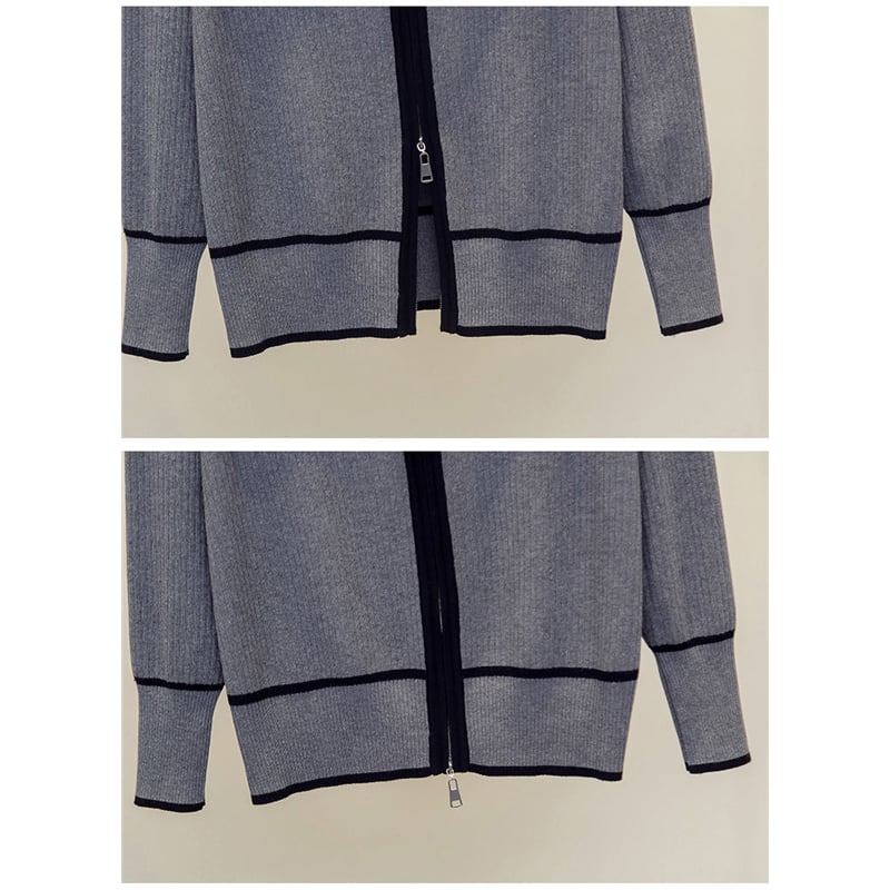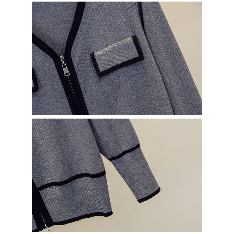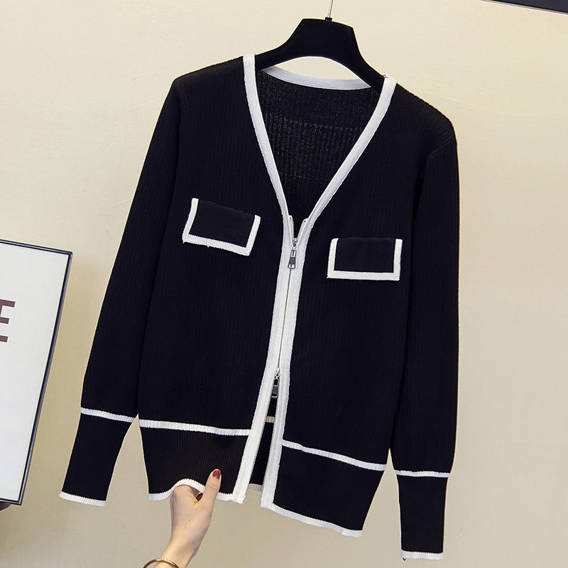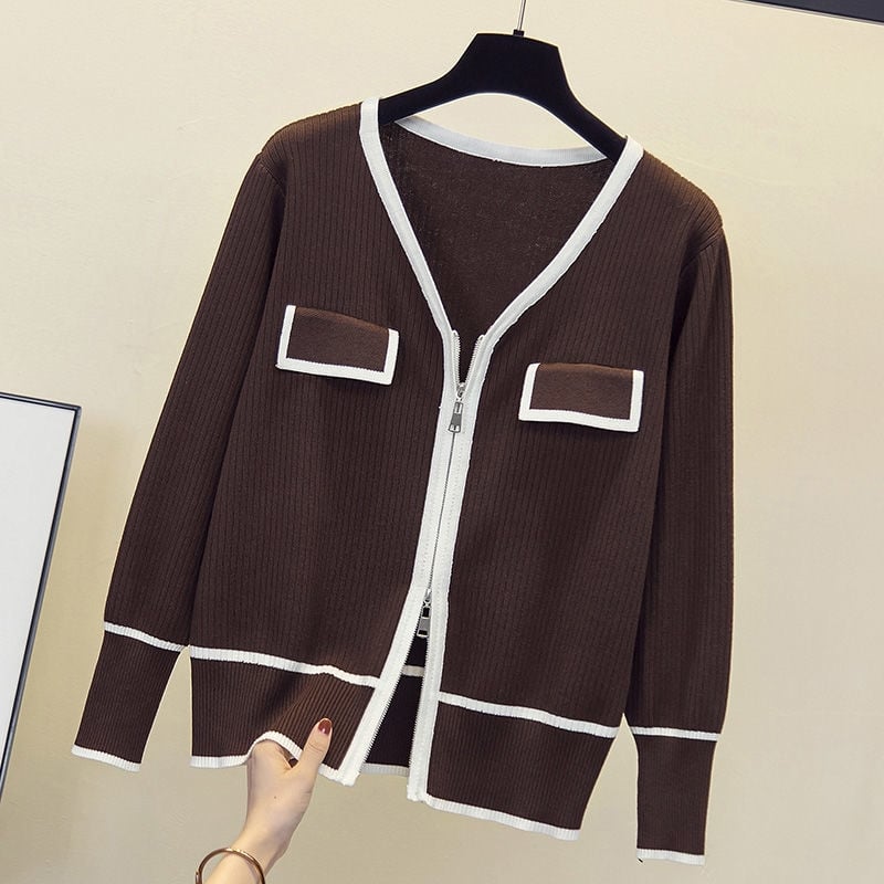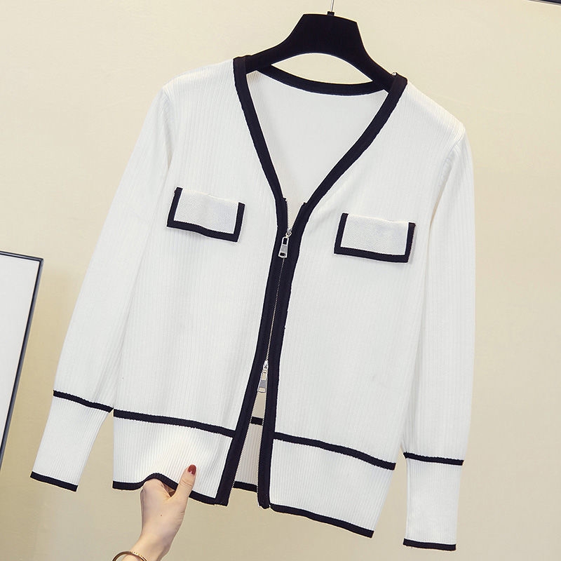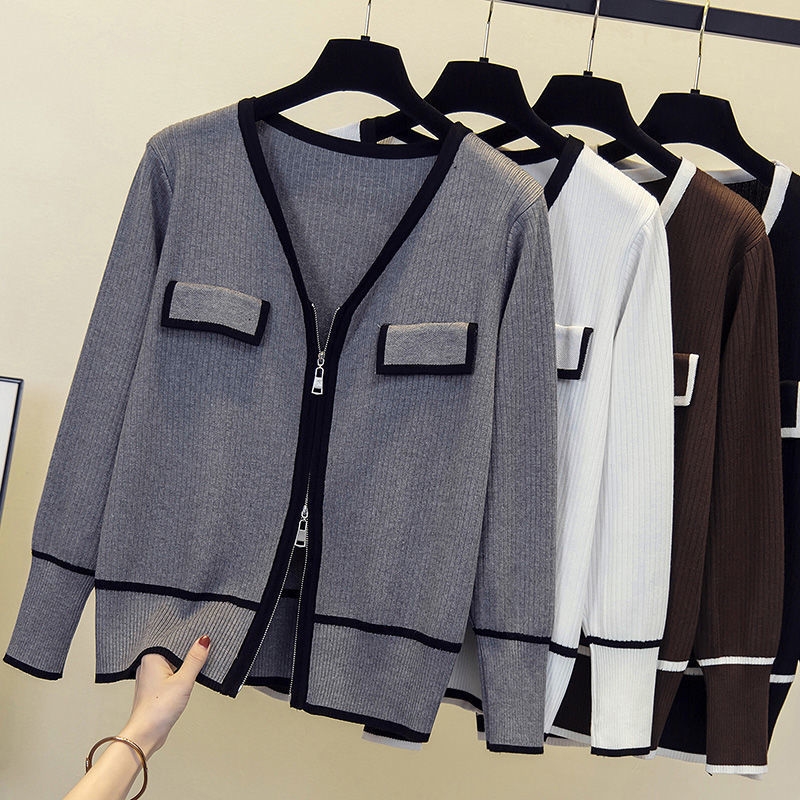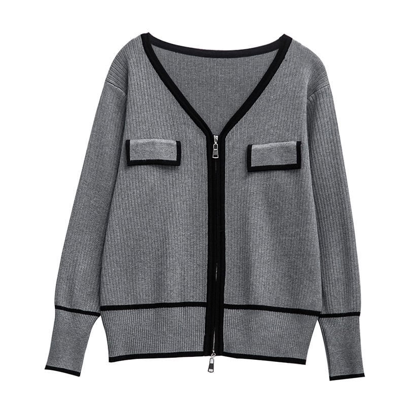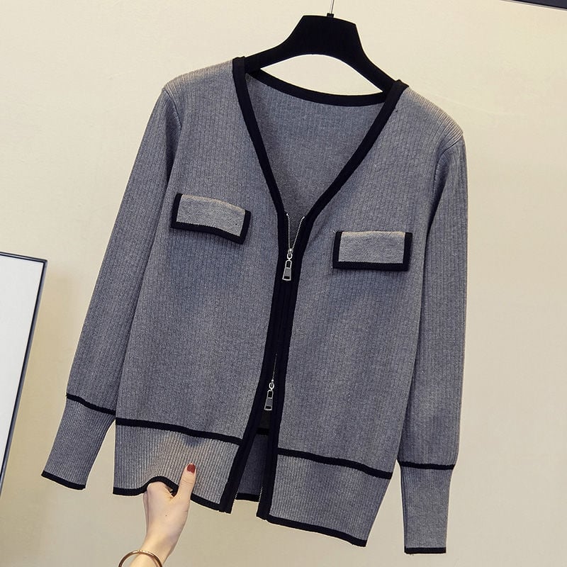 Long Sleeves V-Neck Zipper Cardigan Knitted Sweater Top