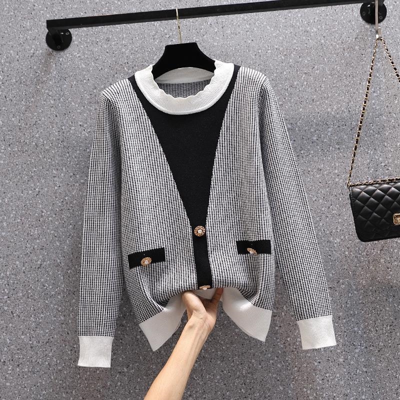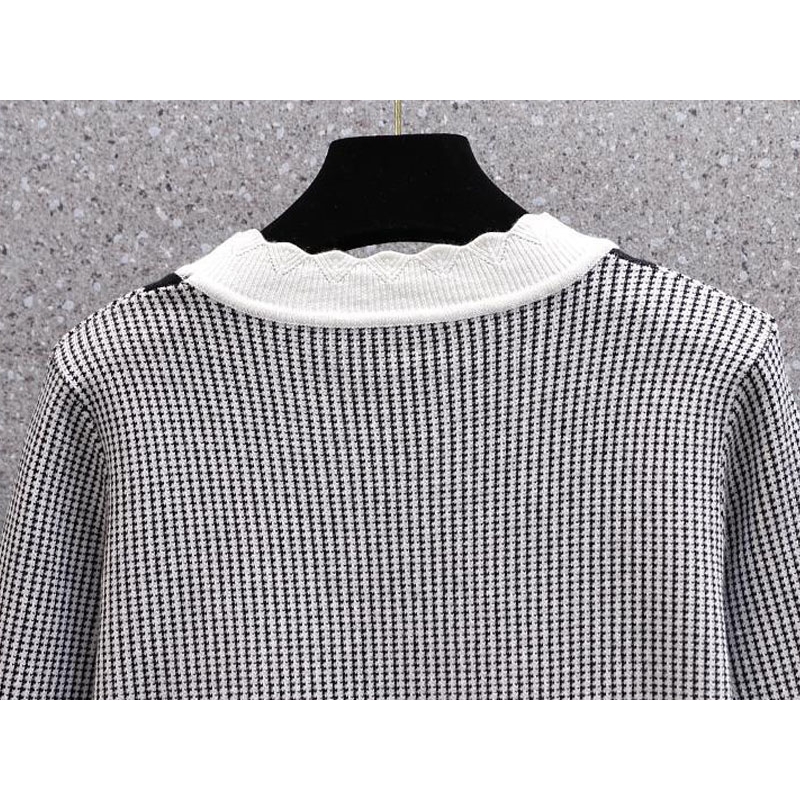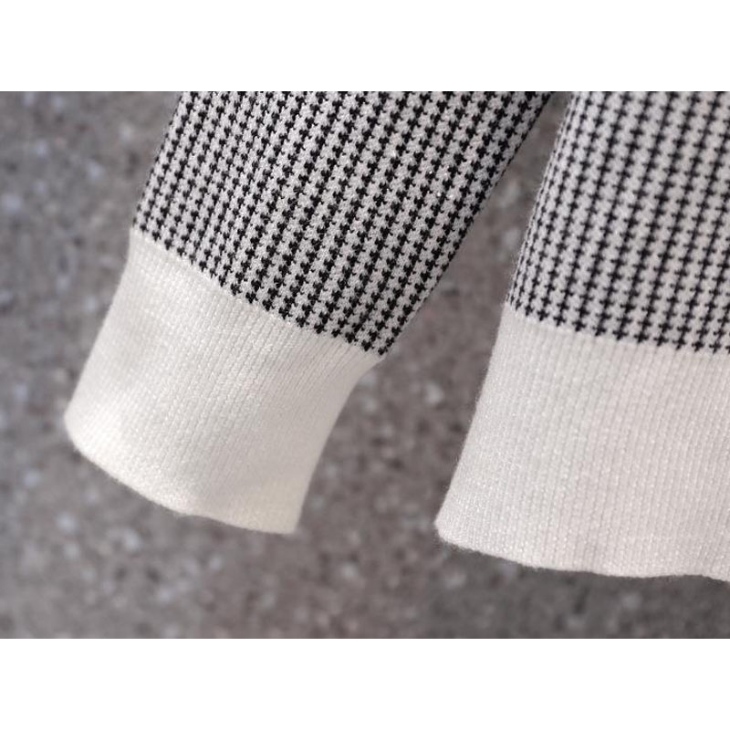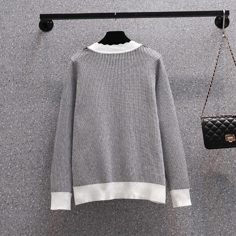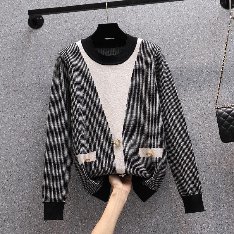 Long Sleeves Crewneck Contrast Color Knitted Sweater