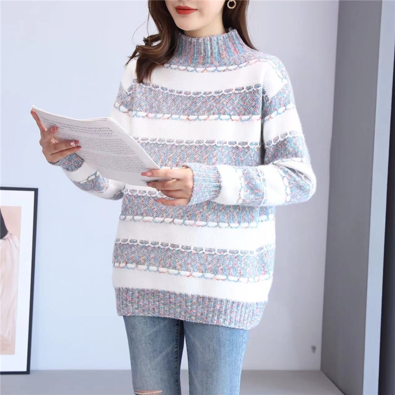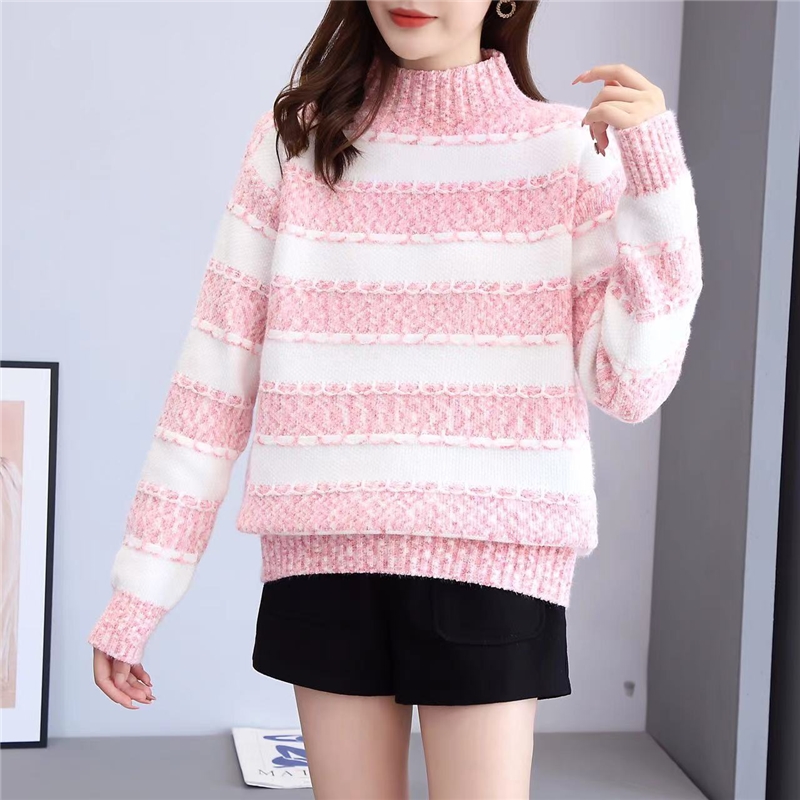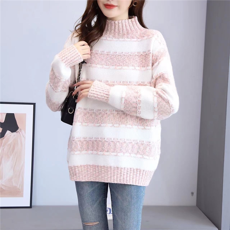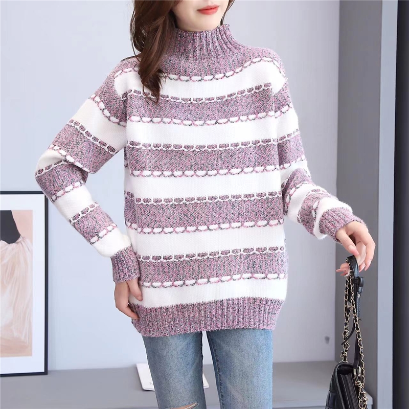 Mock Neck Striped Loose Knit Sweater