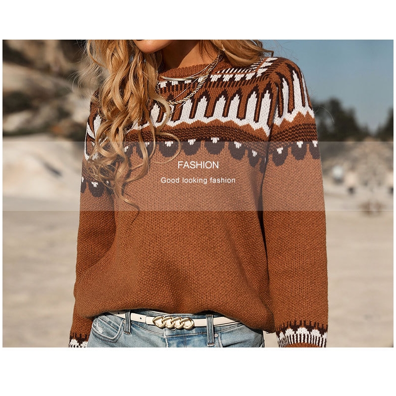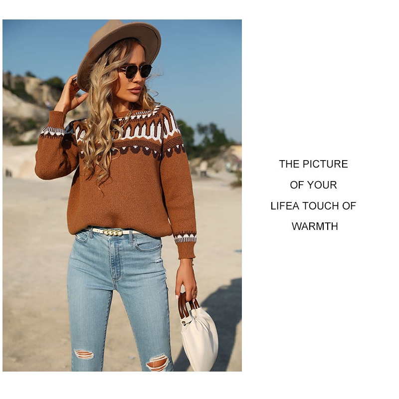 Casual Jacquard Round Neck Long Sleeves Sweater