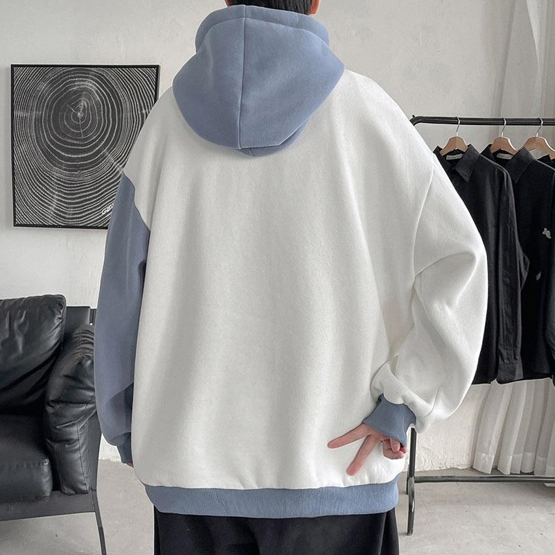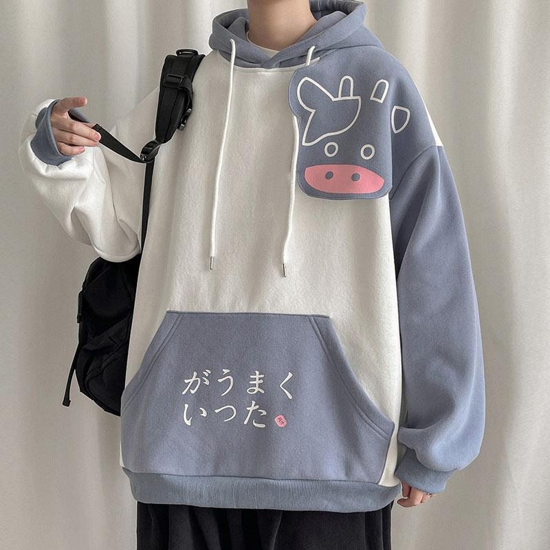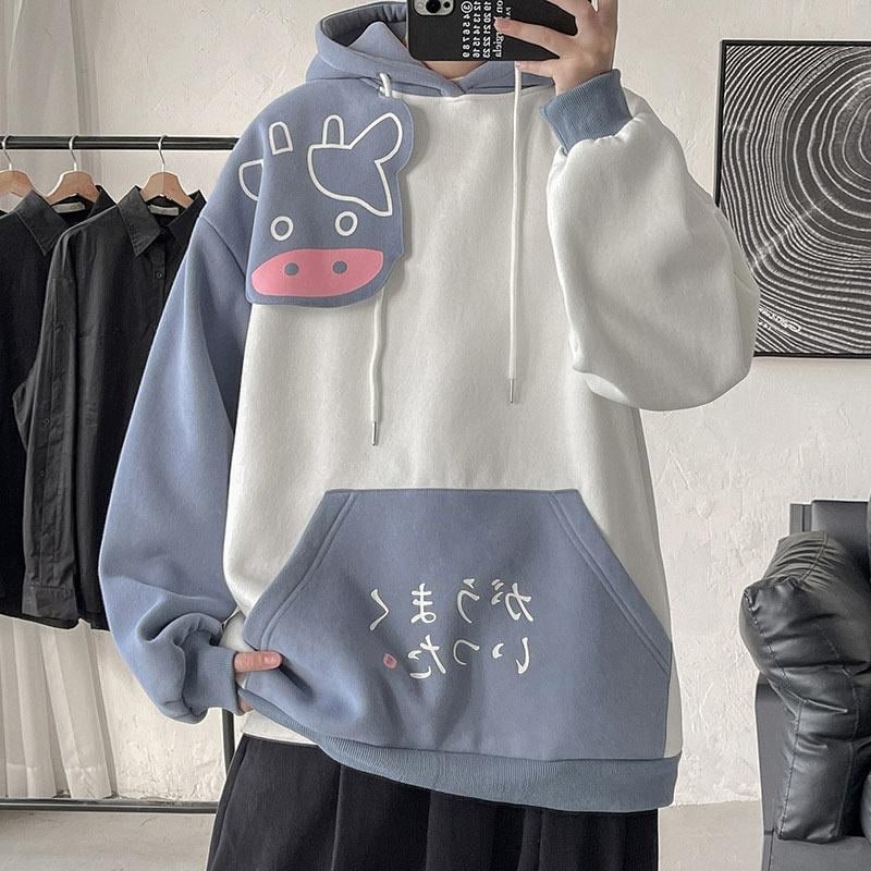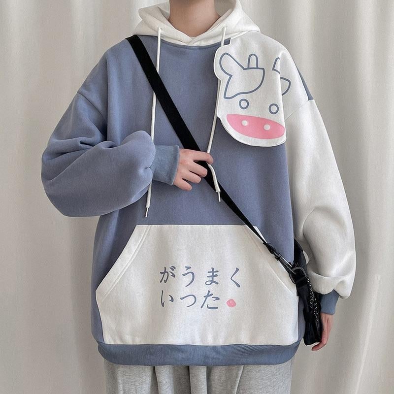 Japanese Style Pink Cow Colorblock Hooded Sweater