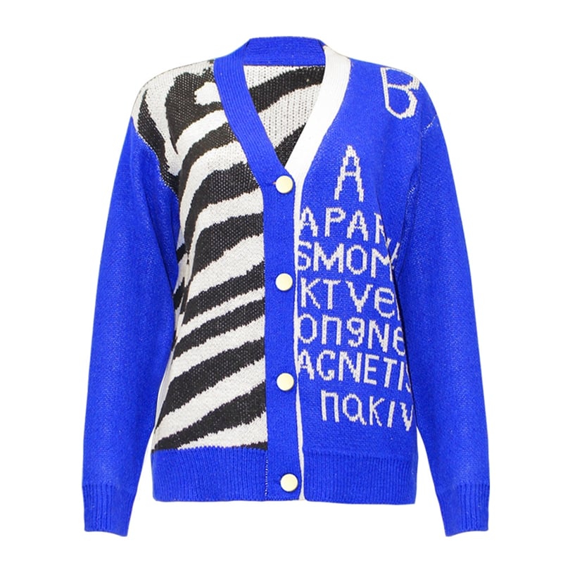 Letters Long Sleeves Cardigan Single Breasted Loose Casual Sweater