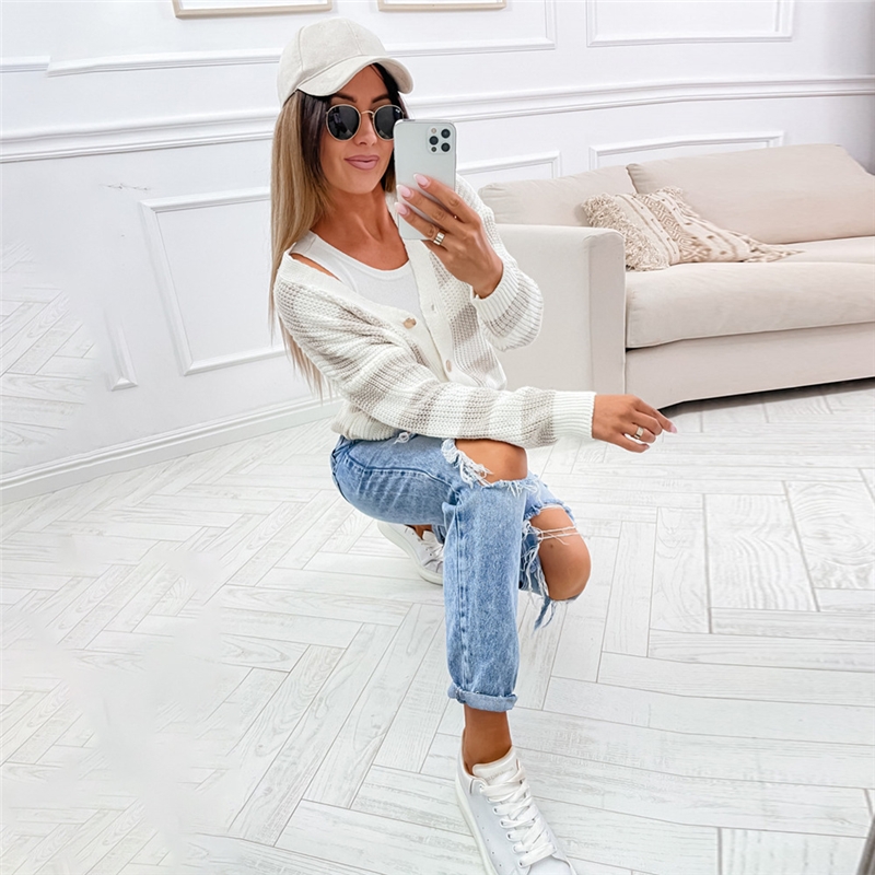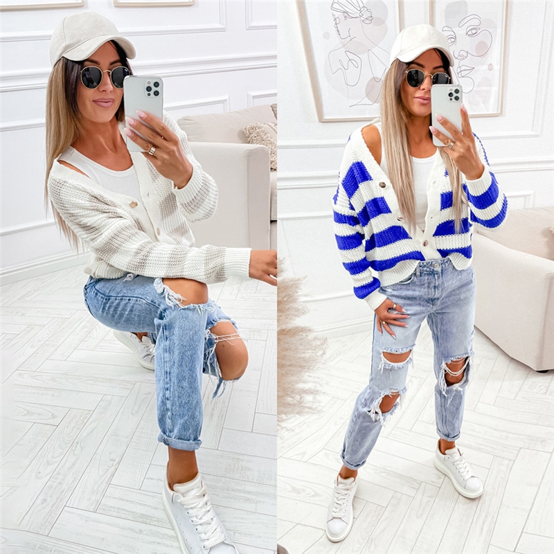 Striped Long Sleeves Cardigan Single Breasted Loose Casual Sweater