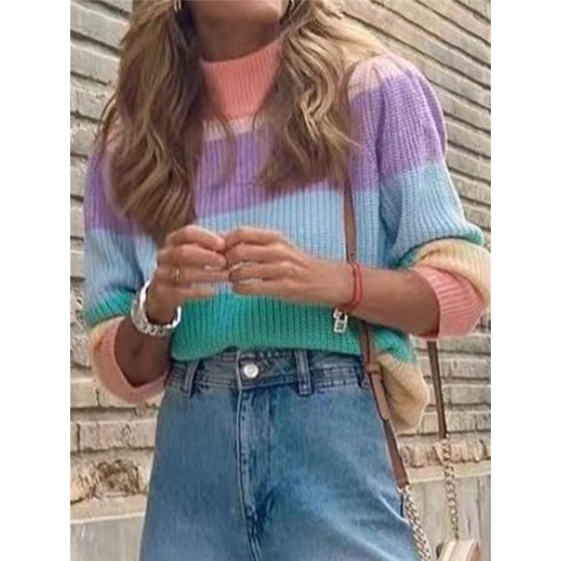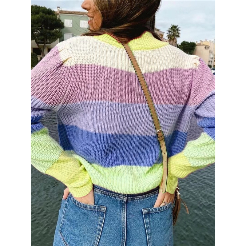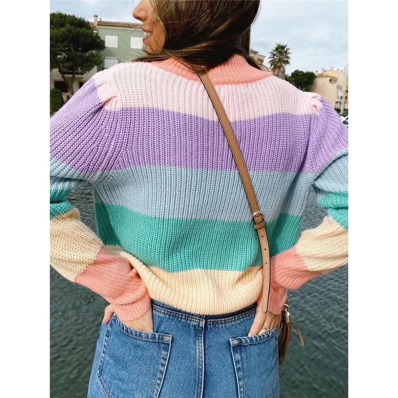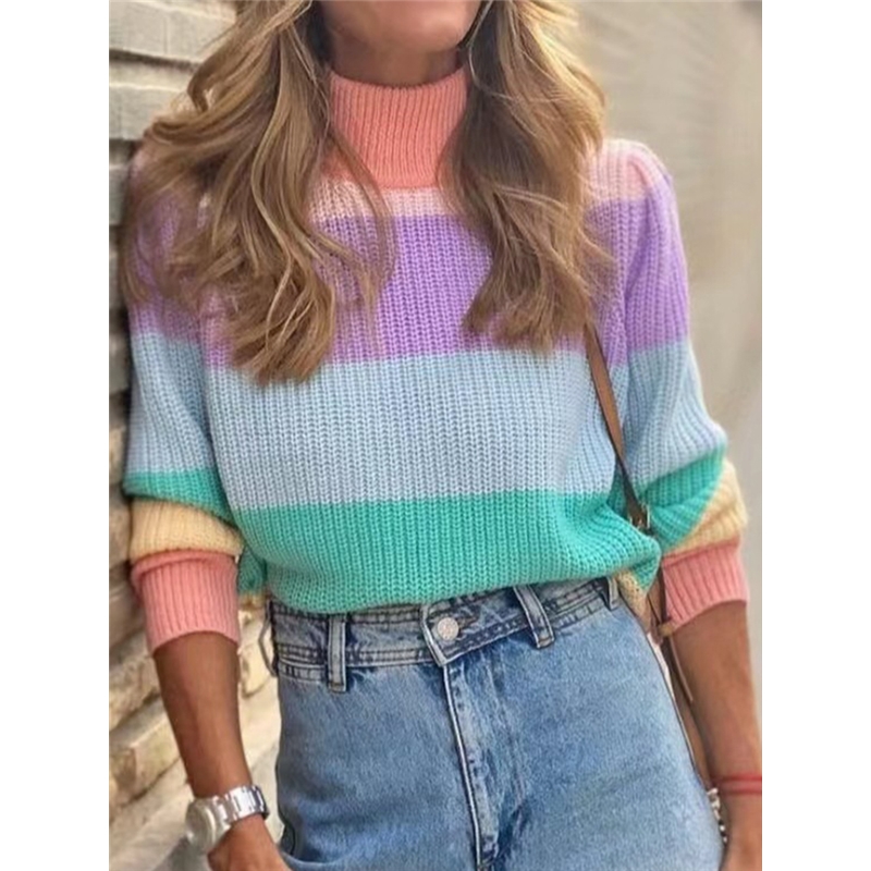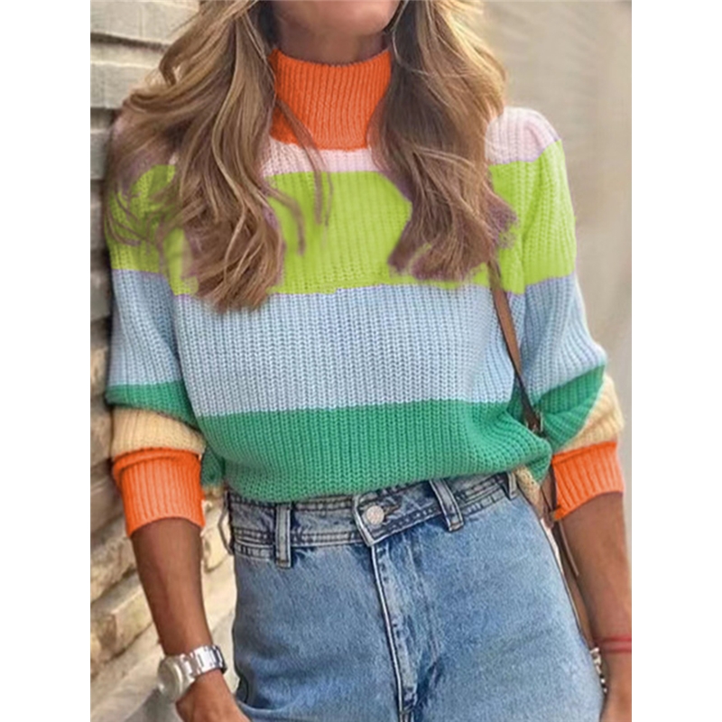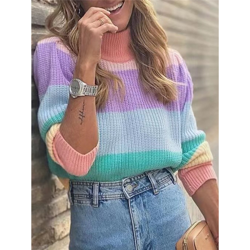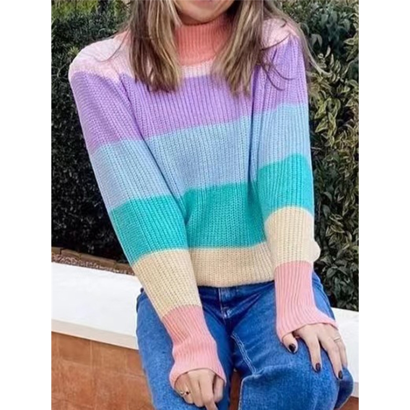 Colorful Stripe High Neck Sweater