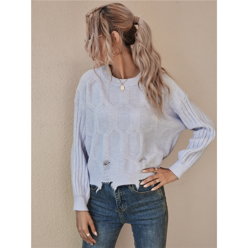 New Loose Long Sleeves Round Neck Sweater