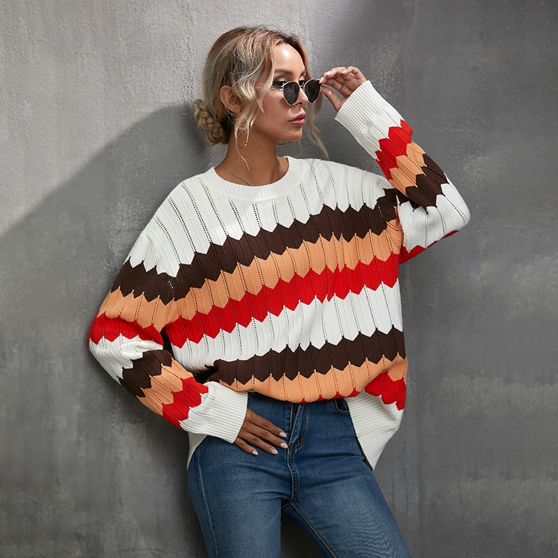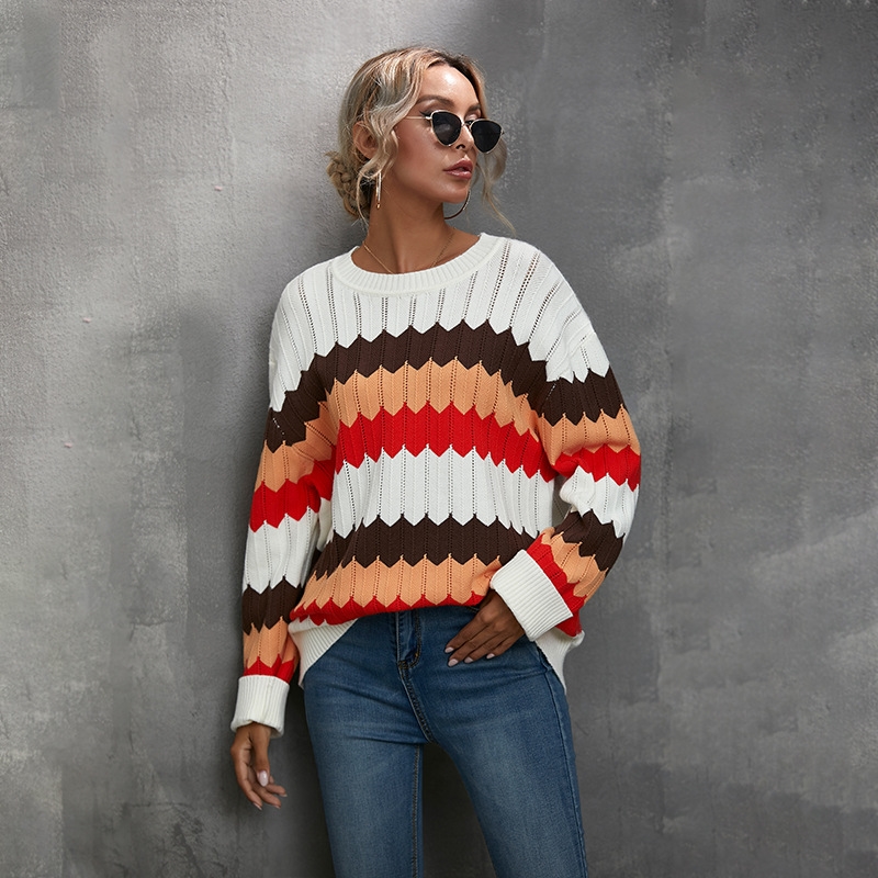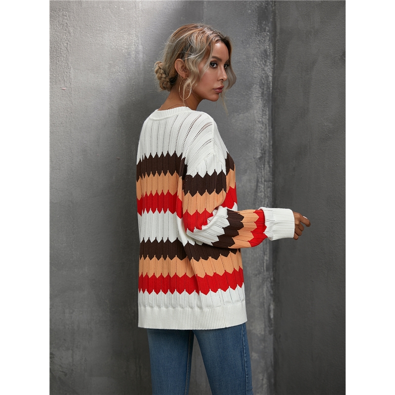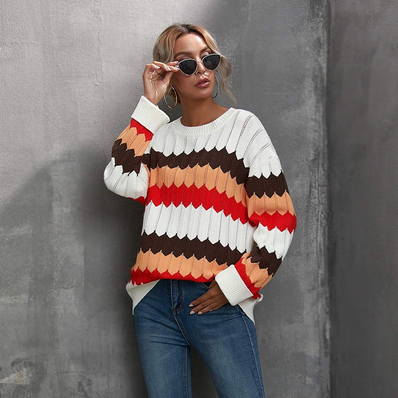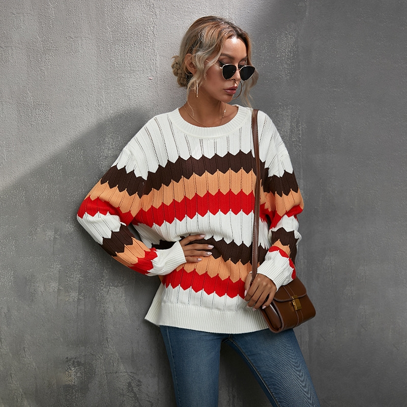 Long Sleeve Round Neck Contrast Color Sweater