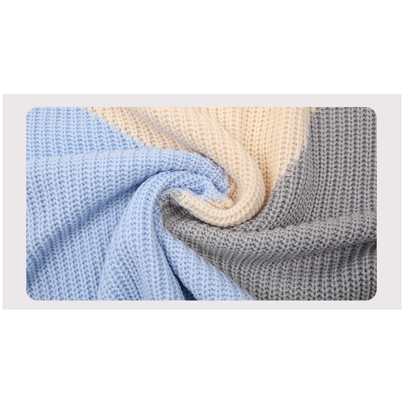 Long Sleeve High Neck Contrast Color Sweater