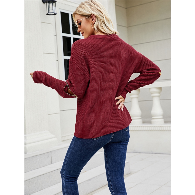Long Sleeve V Neck Solid Color Casual Sweater Top