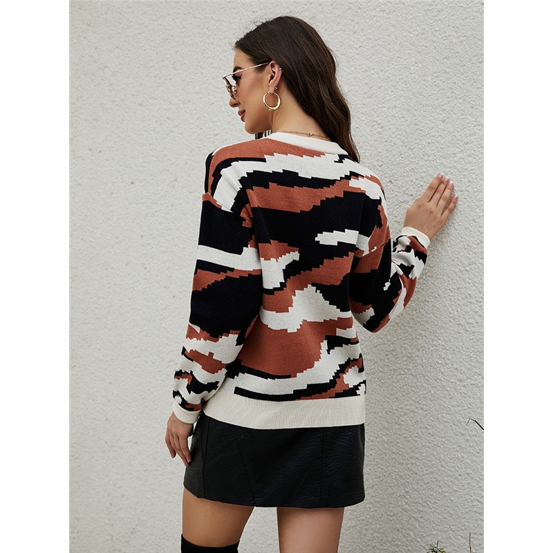 Long Sleeve Round Neck Camouflage Pullover Sweater