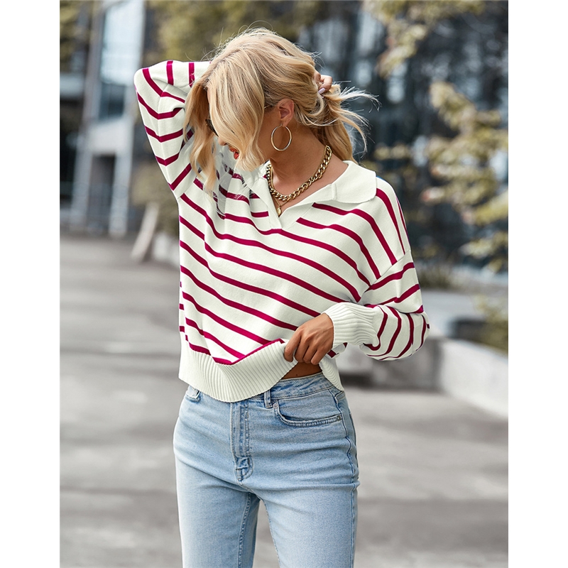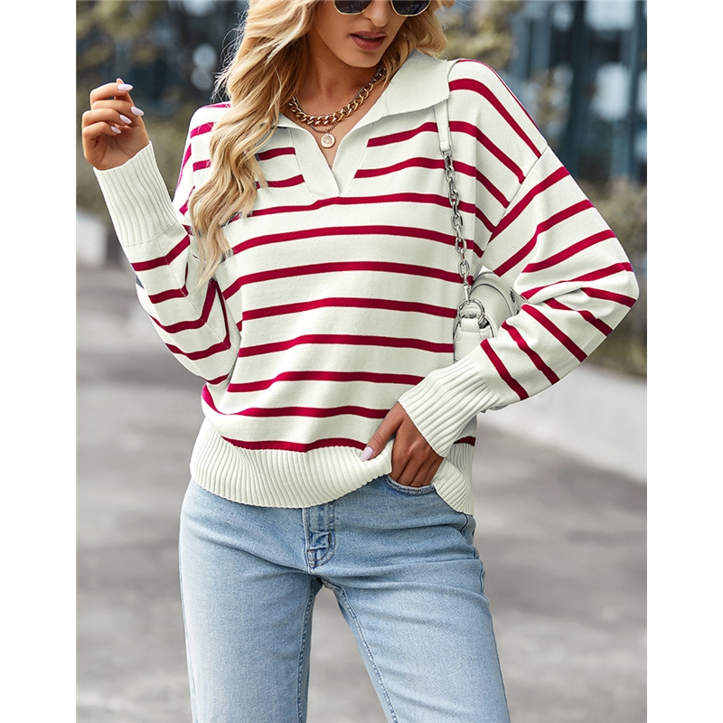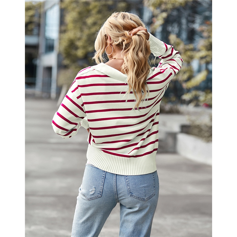 Casual Stripe Long Sleeve V Neck Sweater Top