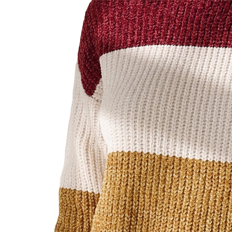 Long Sleeve High Neck Contrast Color Pullover Sweater