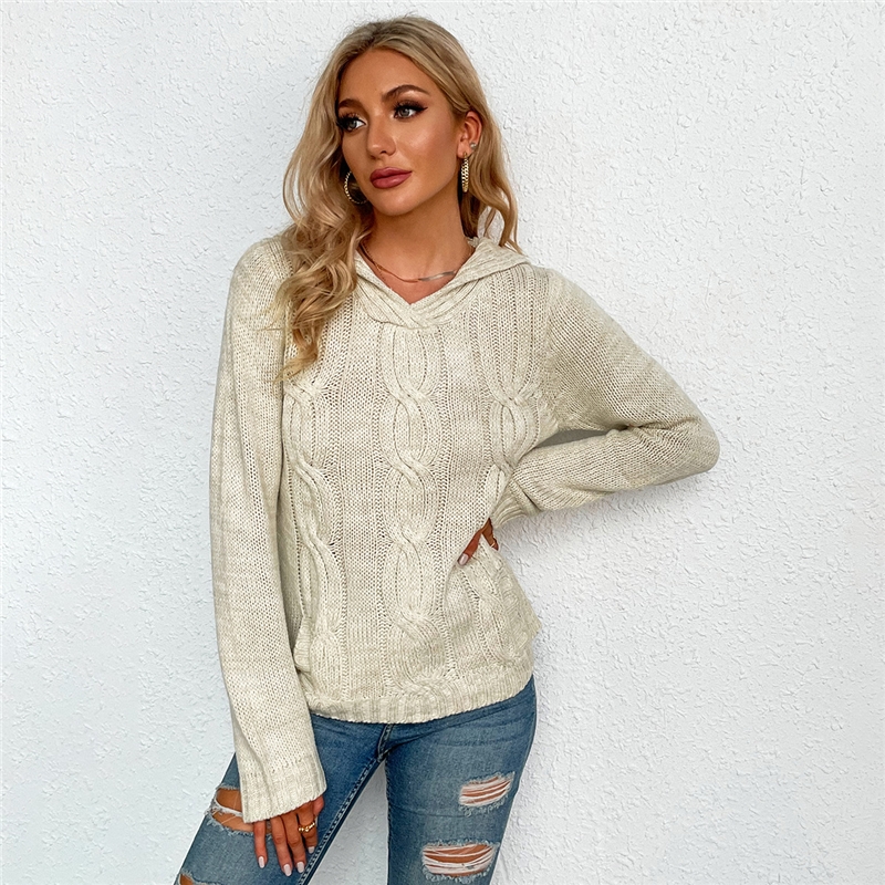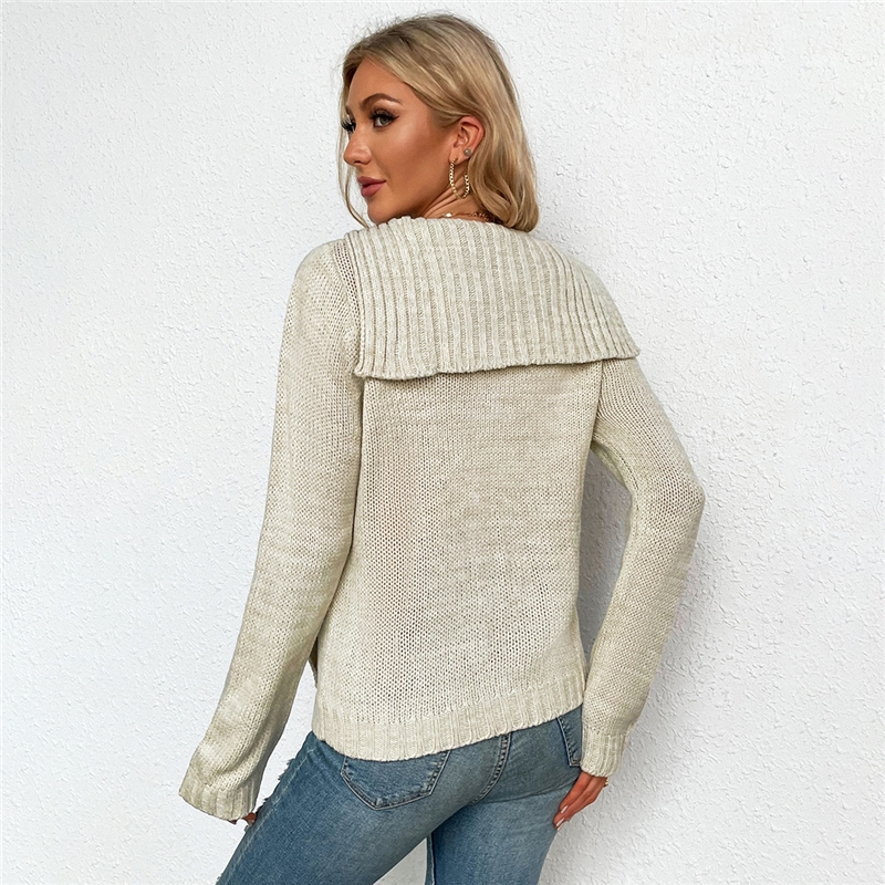 Scarf Collar Long Sleeve Twisted Knit Sweater