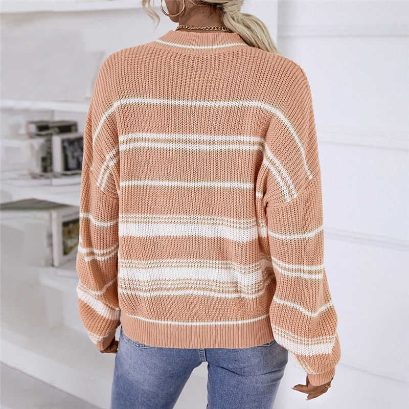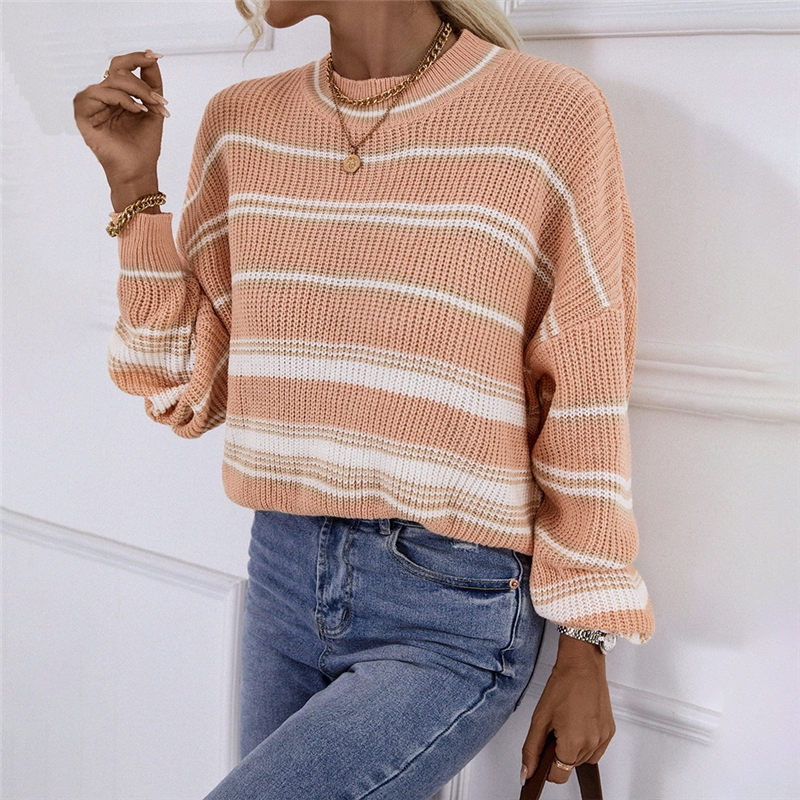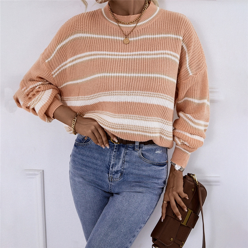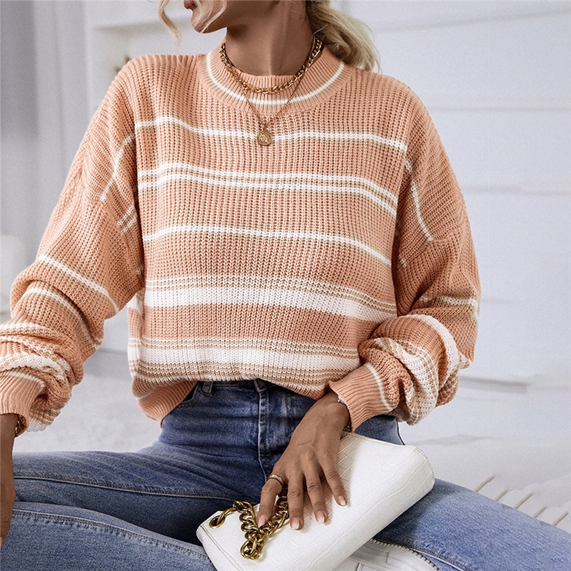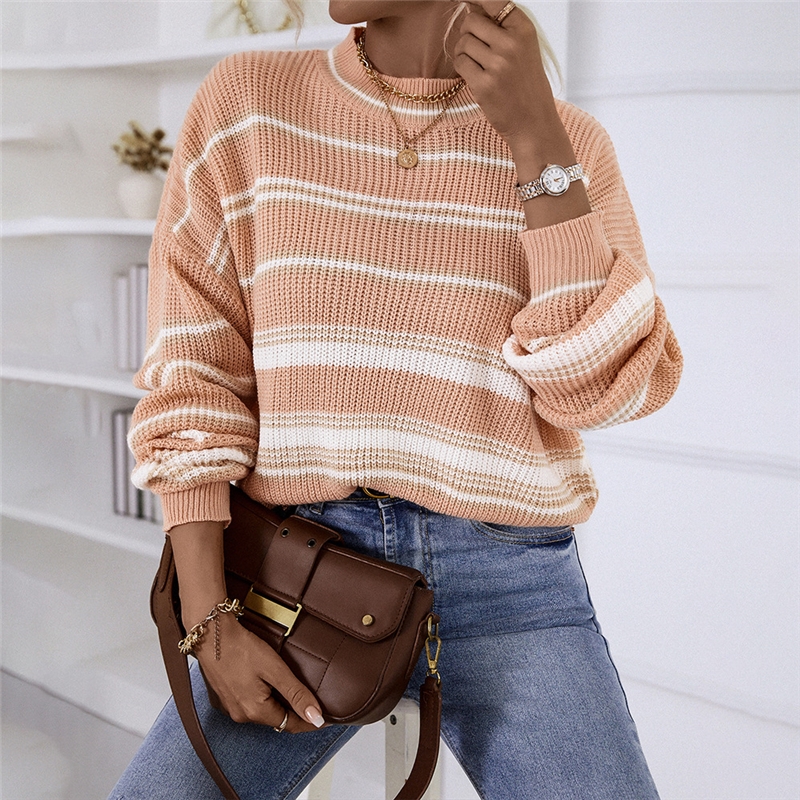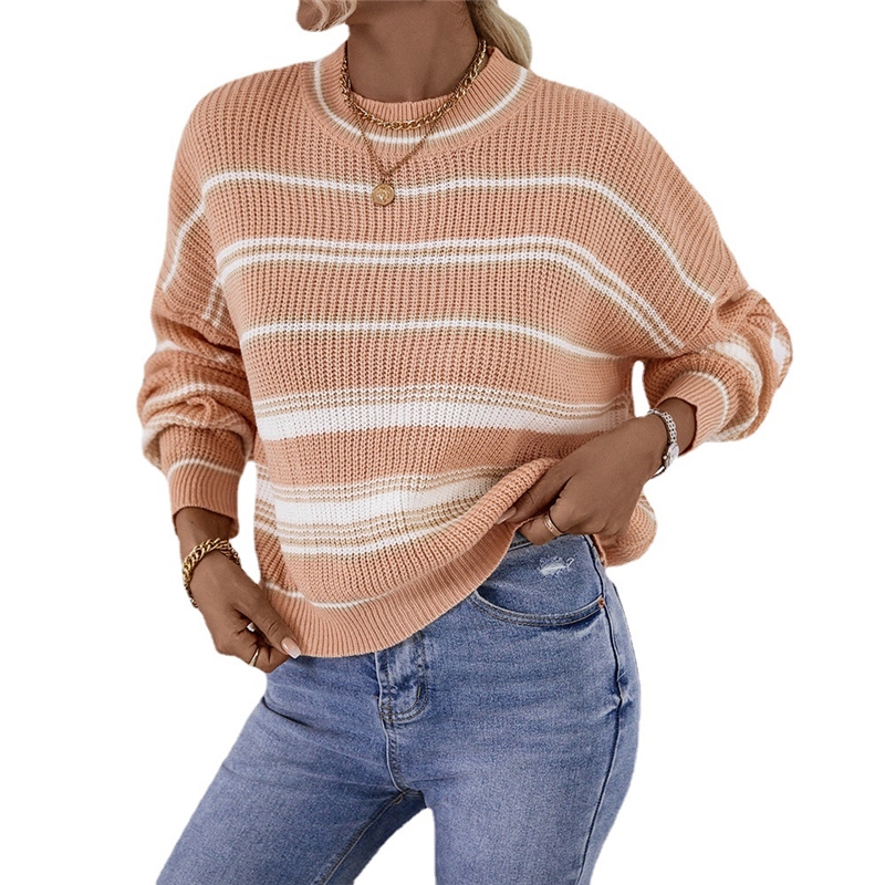 Loose Casual Crewneck Pullover Long Sleeve Striped Sweater