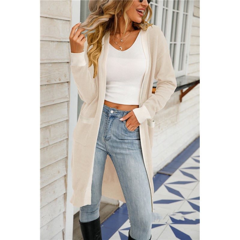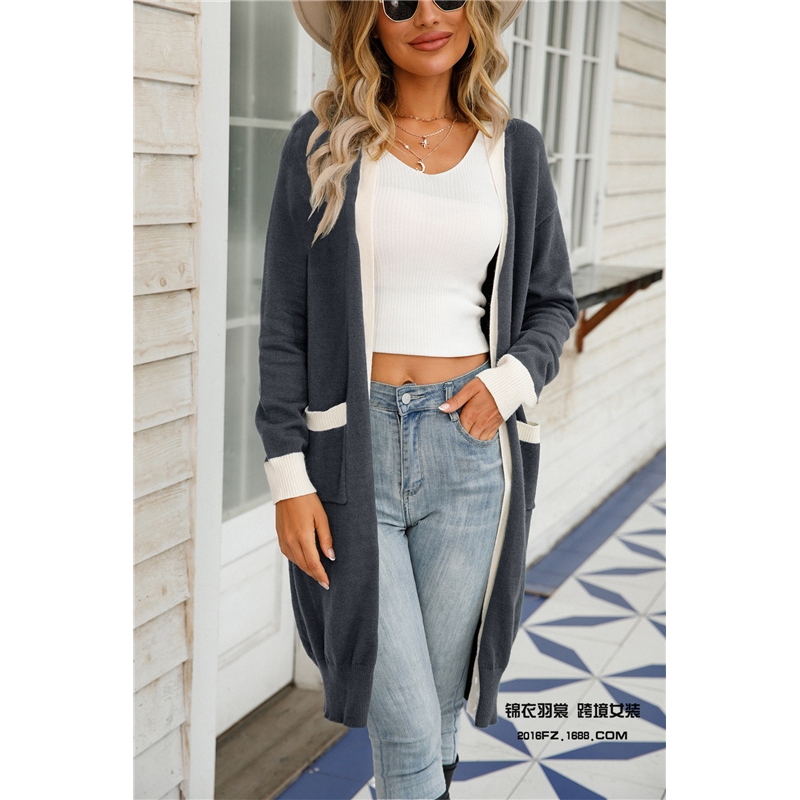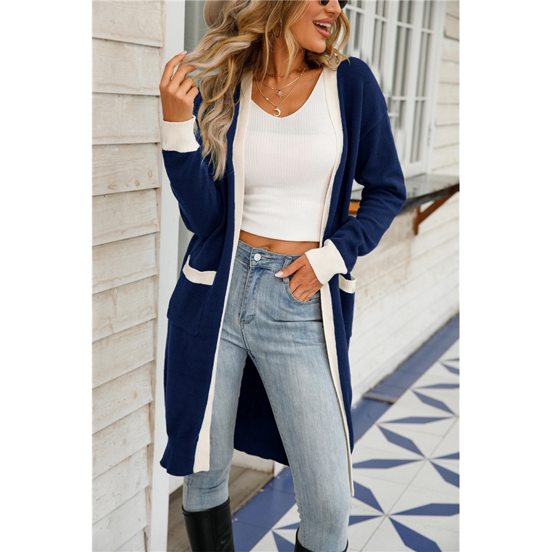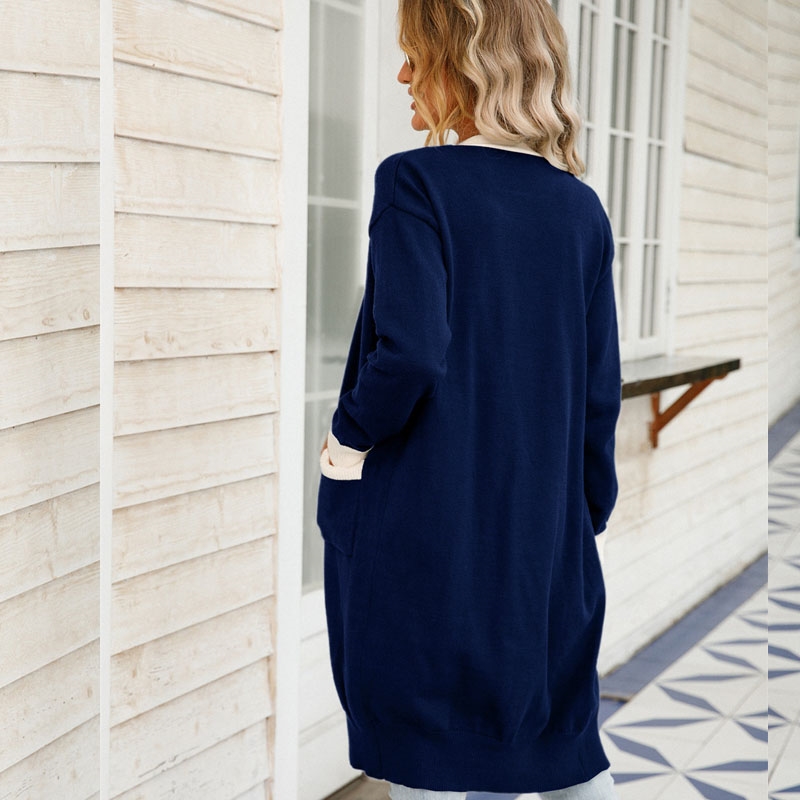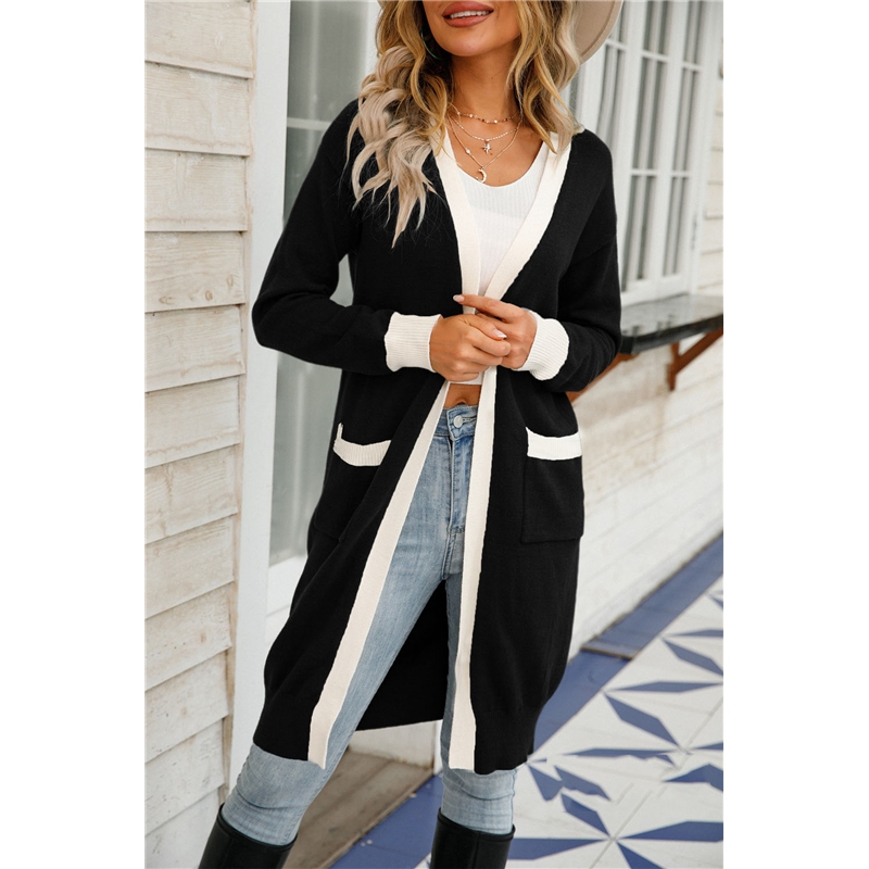 4. This Contrast Color Long Knitted Cardigan Sweater Outerwear is available in multiple sizes to ensure a perfect fit. It is an invaluable layering piece for when the weather turns colder, making it ideal for both professional and casual styling.
