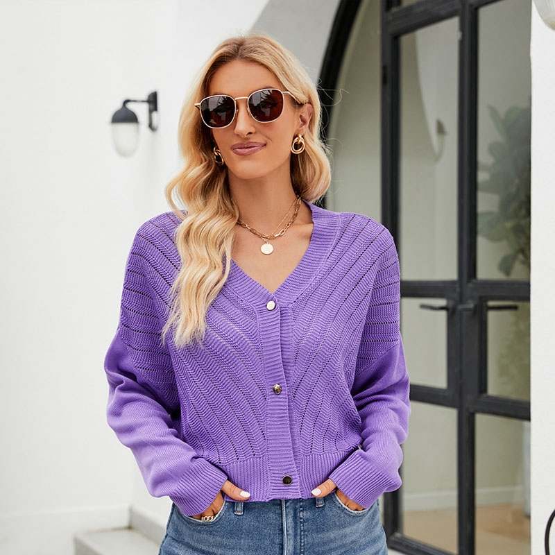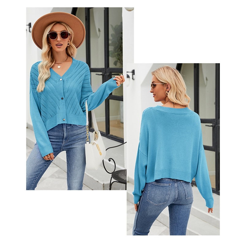 4. The cardigan is perfect for layering in colder months, with the hollow design and single breasted structure creating a fashionable piece.