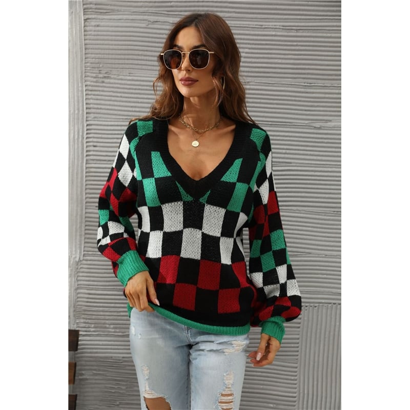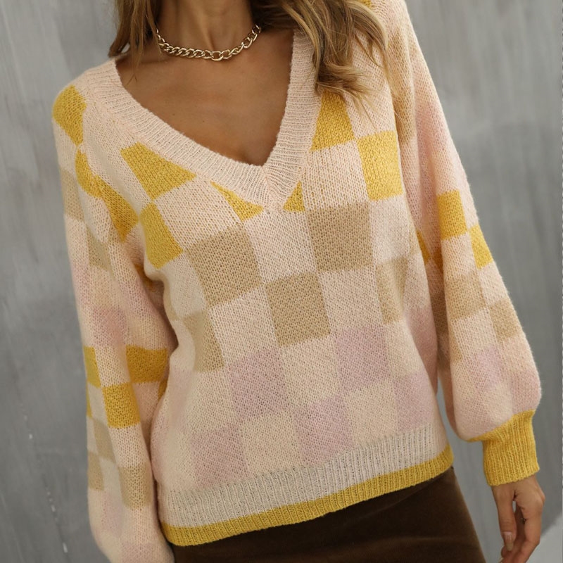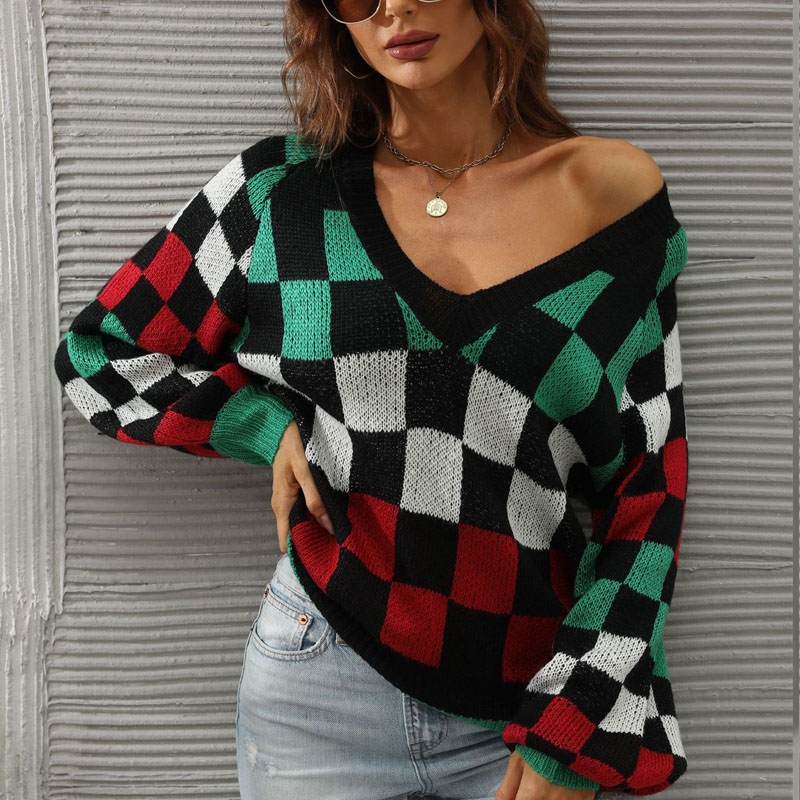 1.This Constrast Color V-Neck Casual Loose Sweater is made from a lightweight and comfortable blend of cotton and polyester.