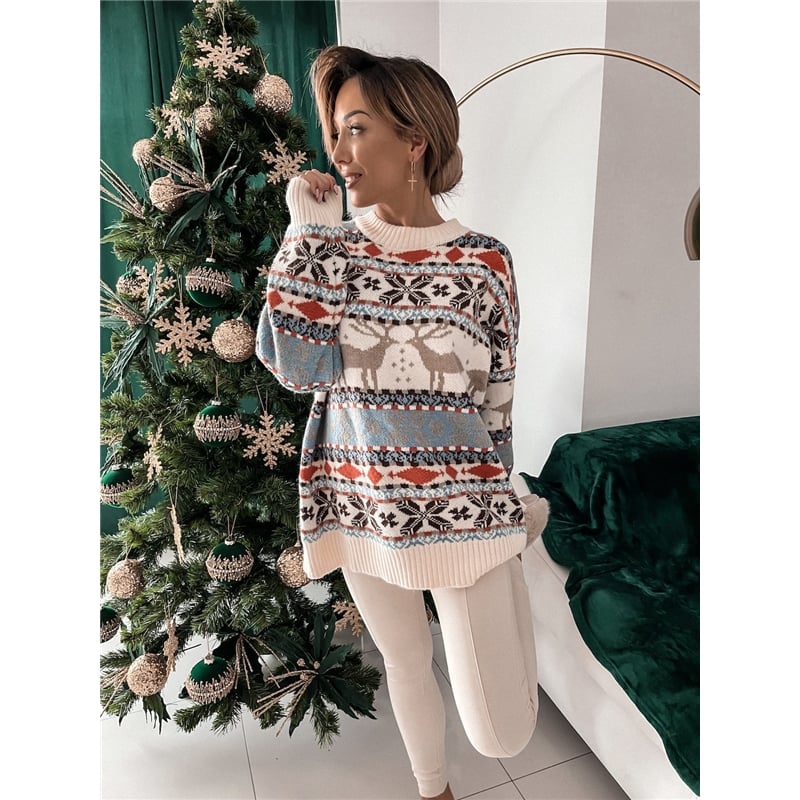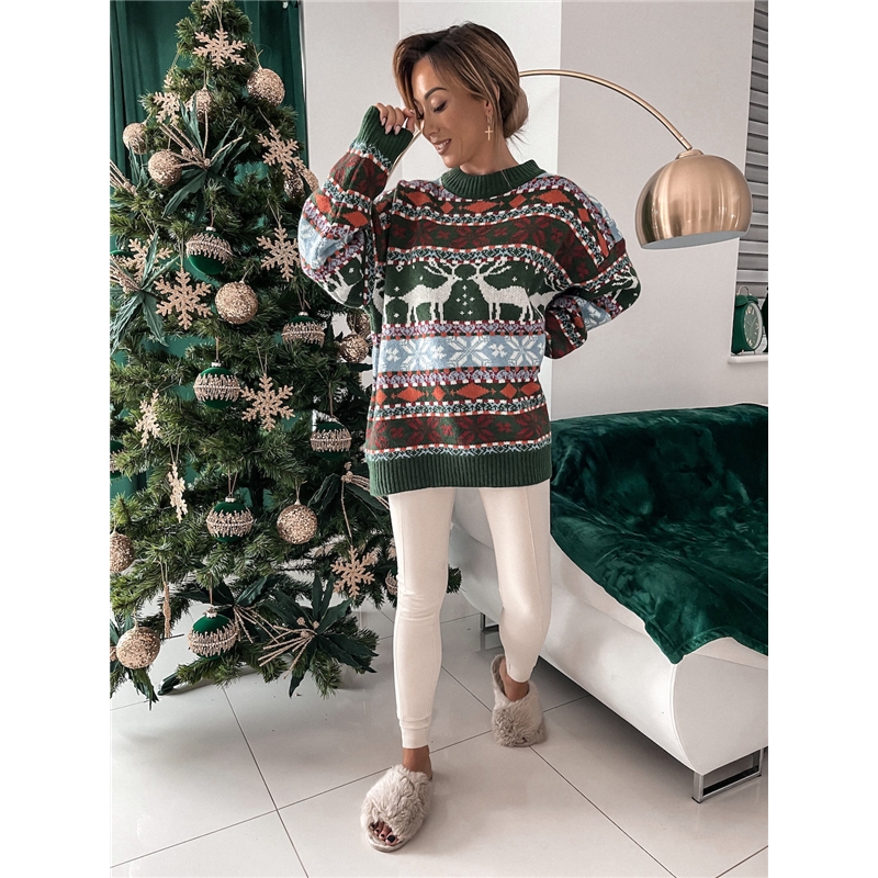 3. Details: This festive pullover features a festive pattern of candy cane stripes across the front and back.