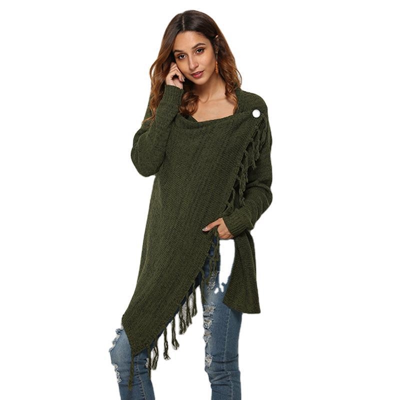 Long Sleeves Solid Color Tassel Loose Knitted Cardigan Outerwear