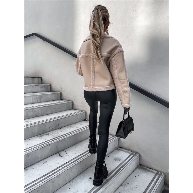 2. Length: This jacket is designed to flatter with a cropped hem that hits just above the waistline.