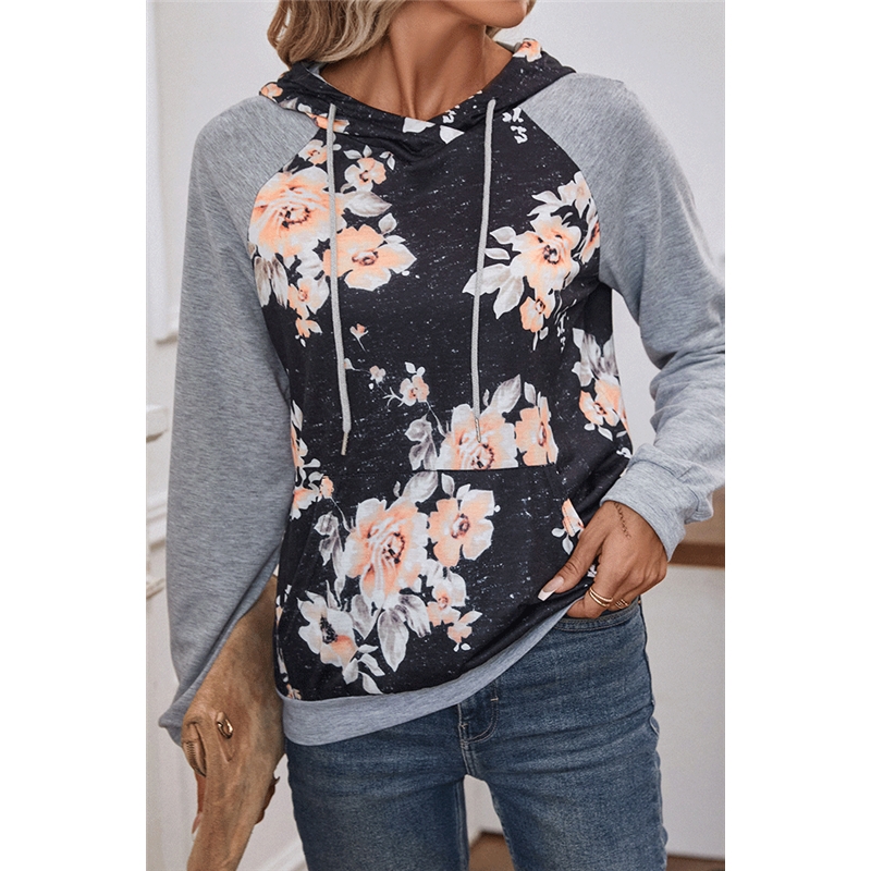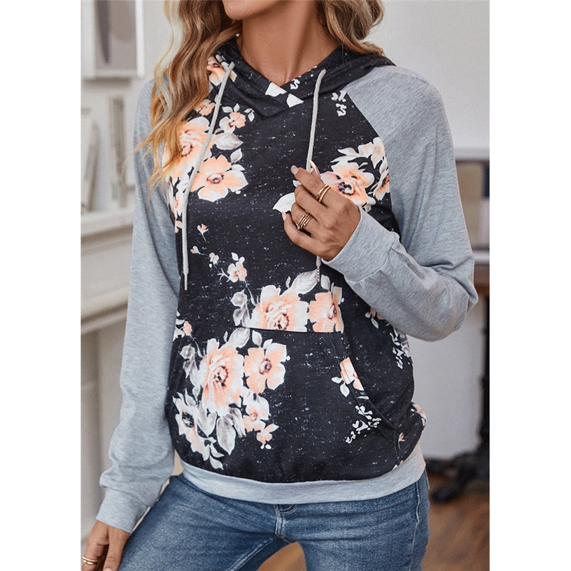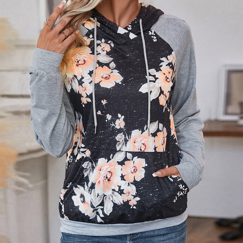 1. Material: This long sleeve printed panel hoodie features a soft feel from a cotton-blend material that is designed for comfort.