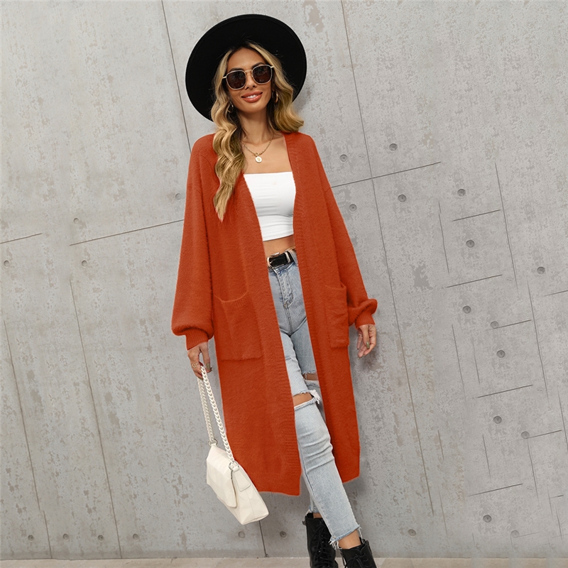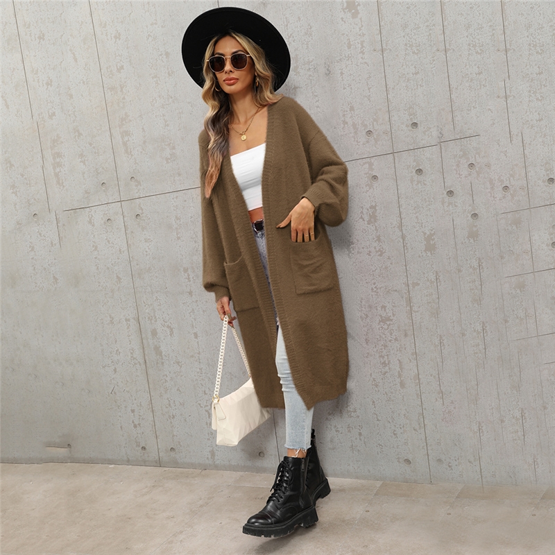 Casual Loose Solid Color Long Knitted Cardigan Outerwear