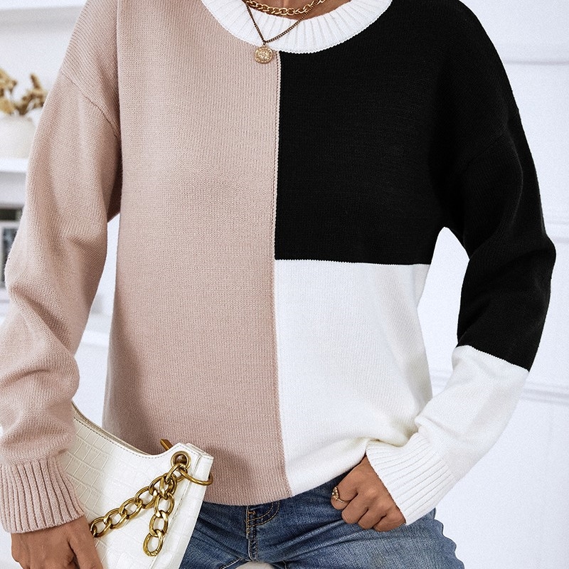1.This classic round neck knit sweater is designed with a versatile silhouette, perfect for layering.