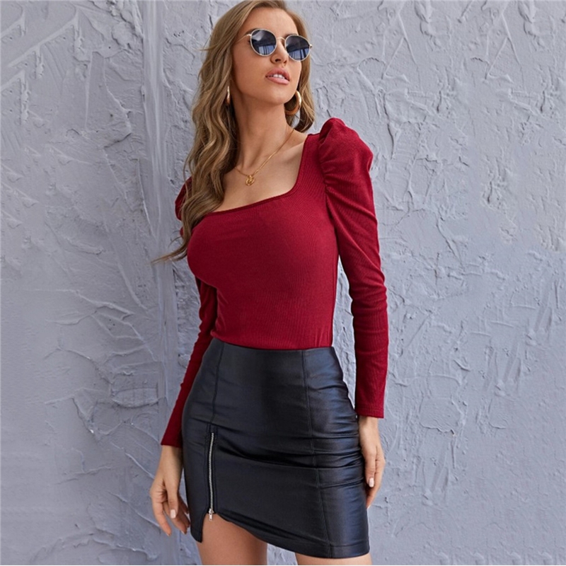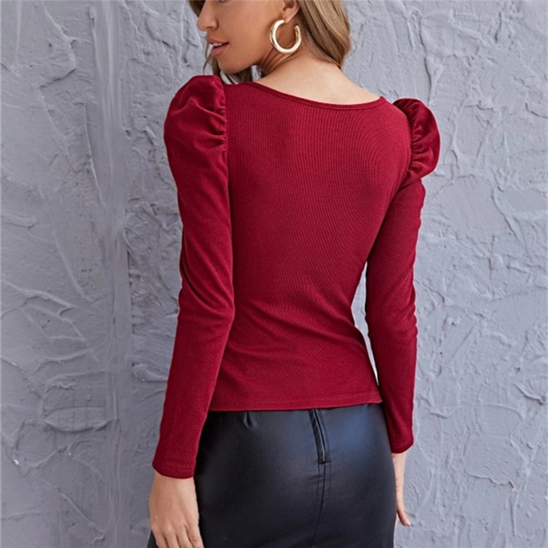 Women's Square Neck Puff Sleeve Neck Slim Long Sleeve Top