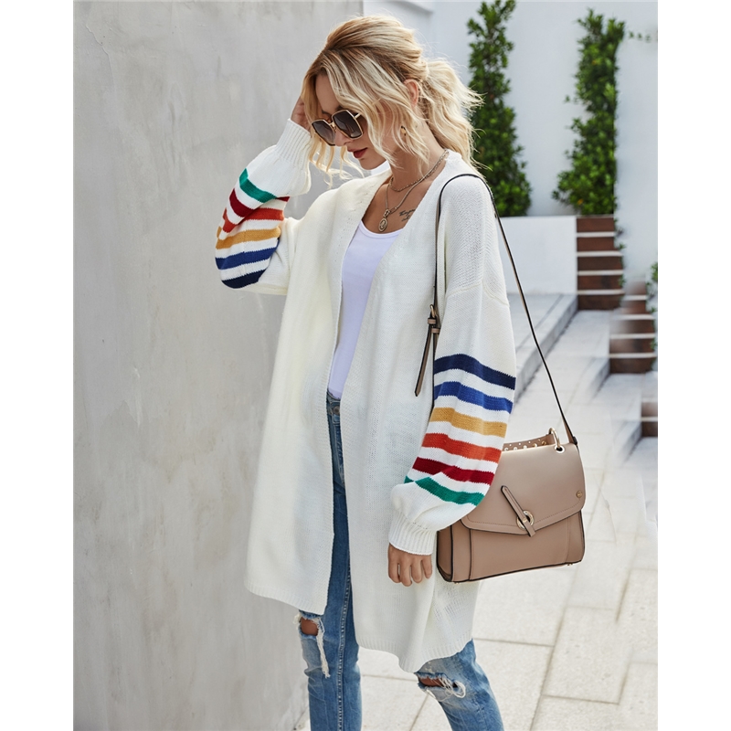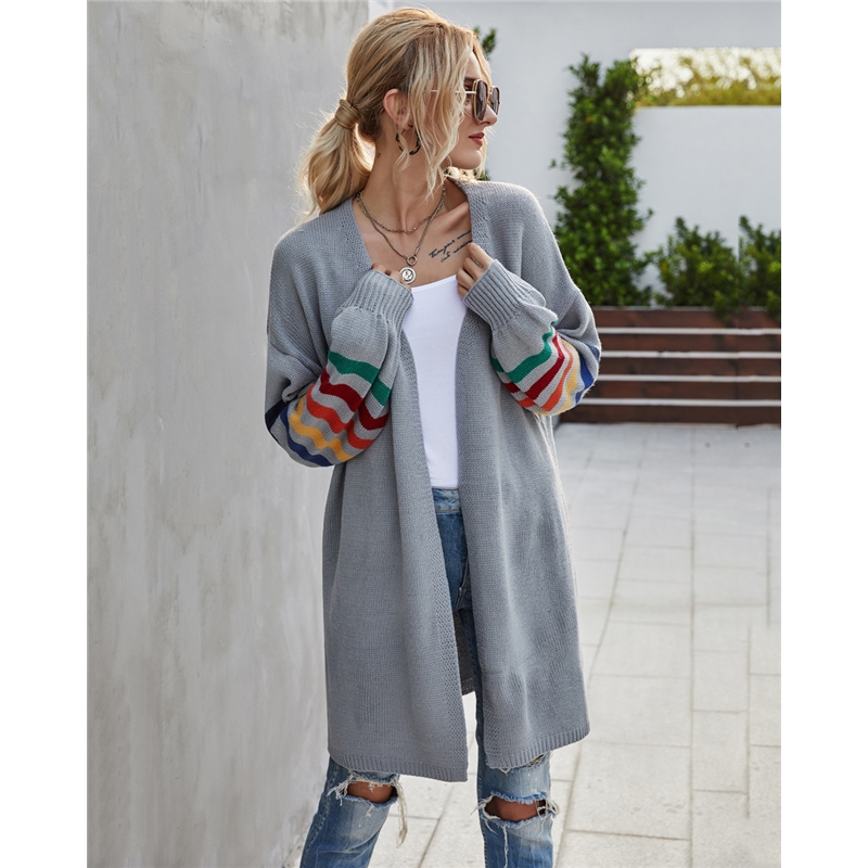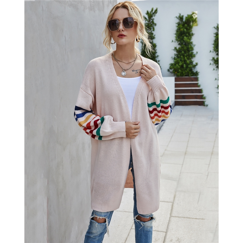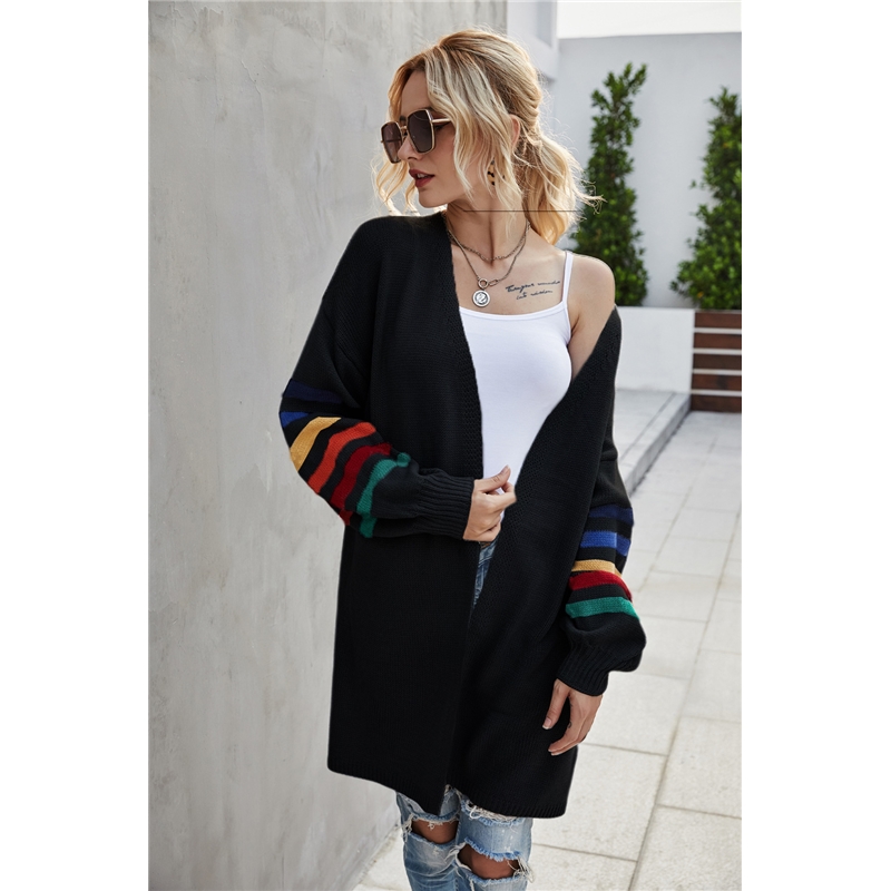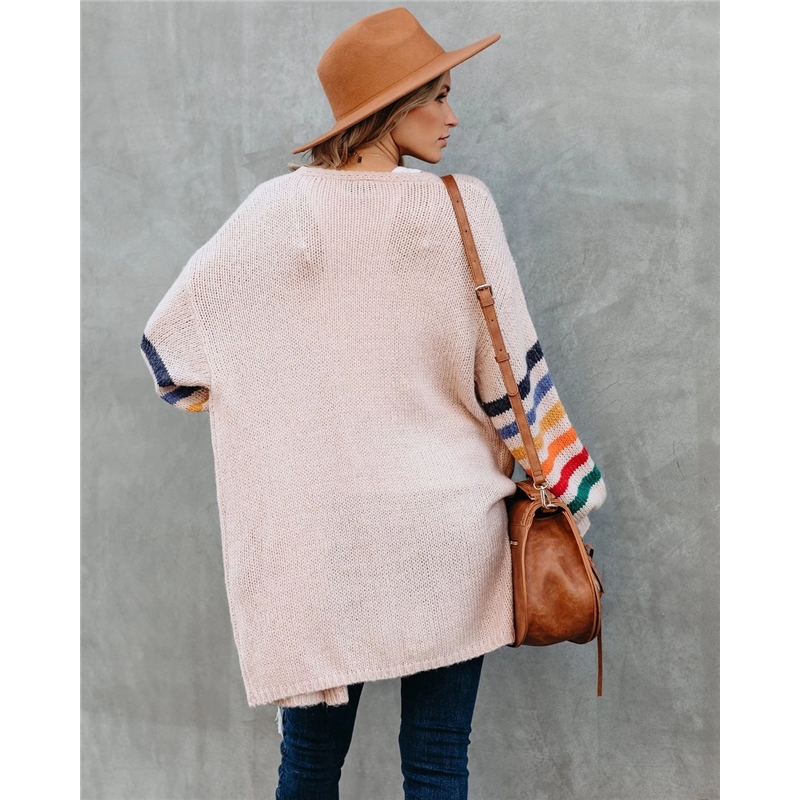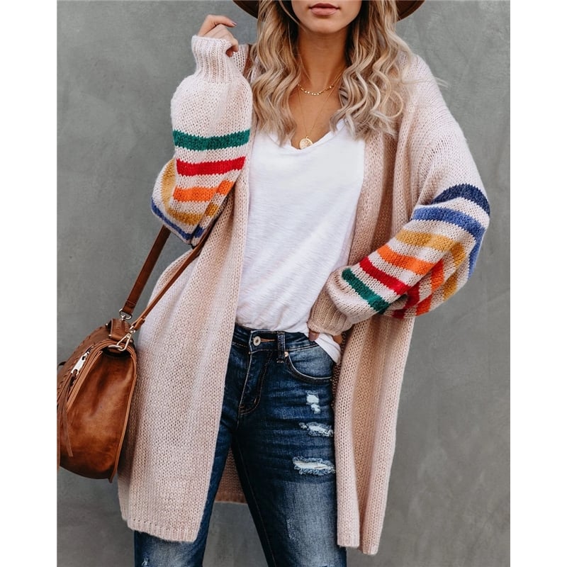 Contrast Color Long Sleeves Knitted Cardigan Outerwear